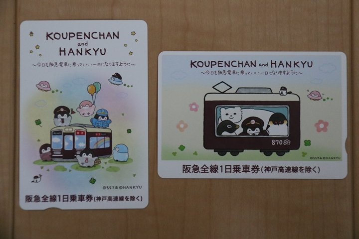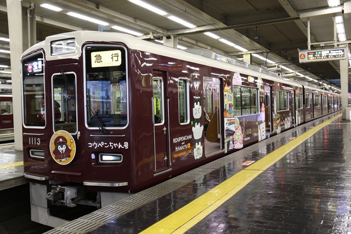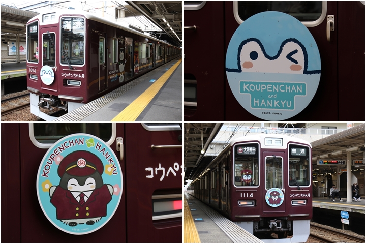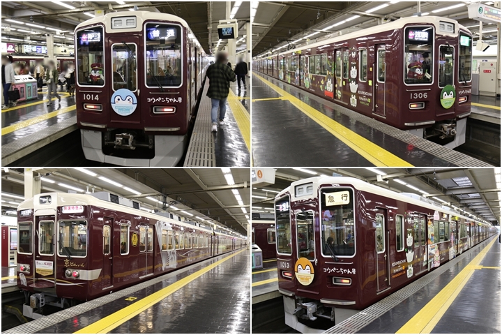| 昨年10月24日(日)、私は事前に阪急電車グッズ公式オンラインショップ「HANKYU DENSHA SHOP」で購入したスタンプラリーキットの中のコウペンちゃん阪急全線1日乗車券を利用し「阪急電車ごっこなマスコット」を携えて大阪梅田駅から6時48分発宝塚行き急行に乗り込みます。 |