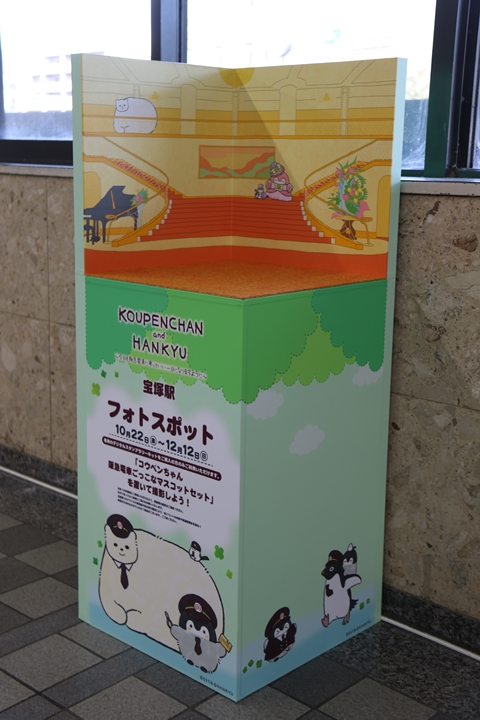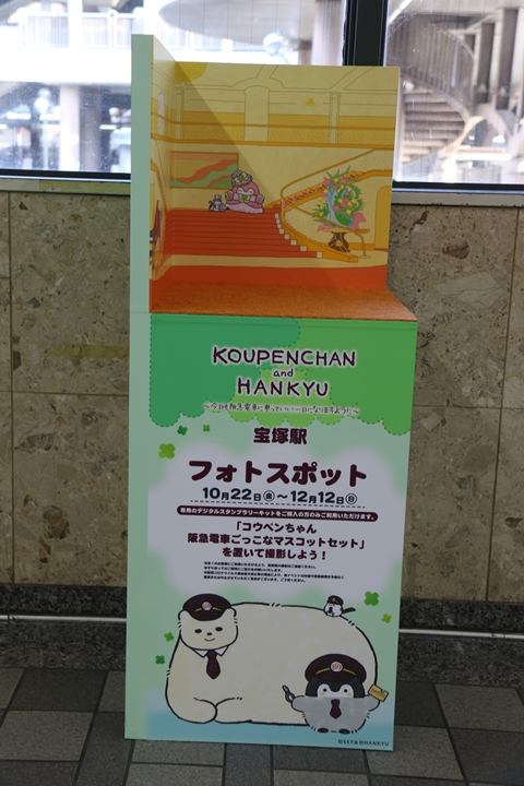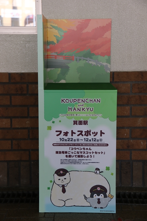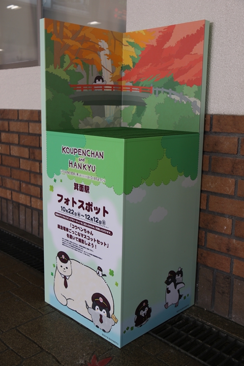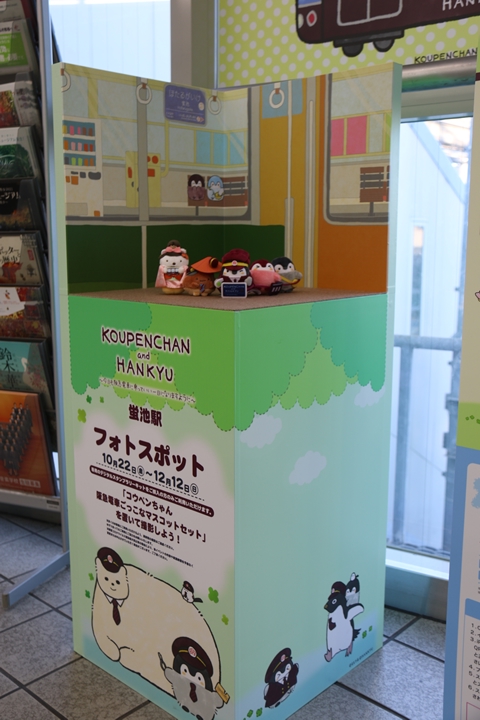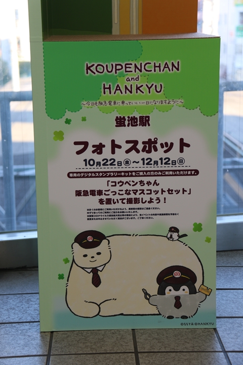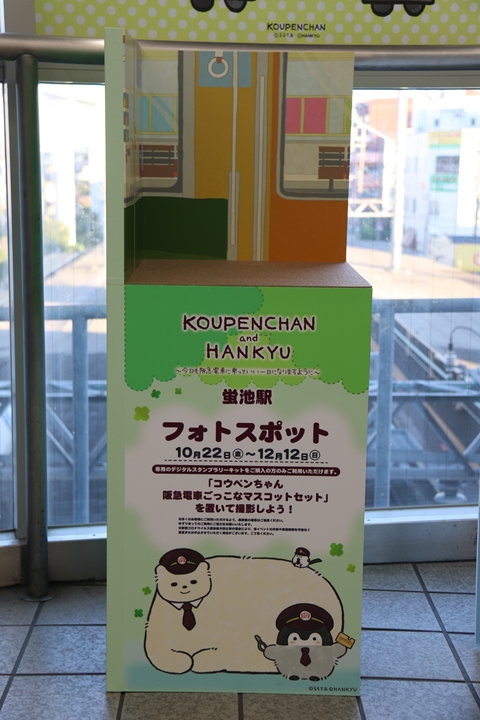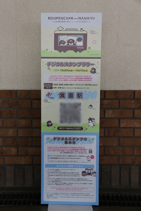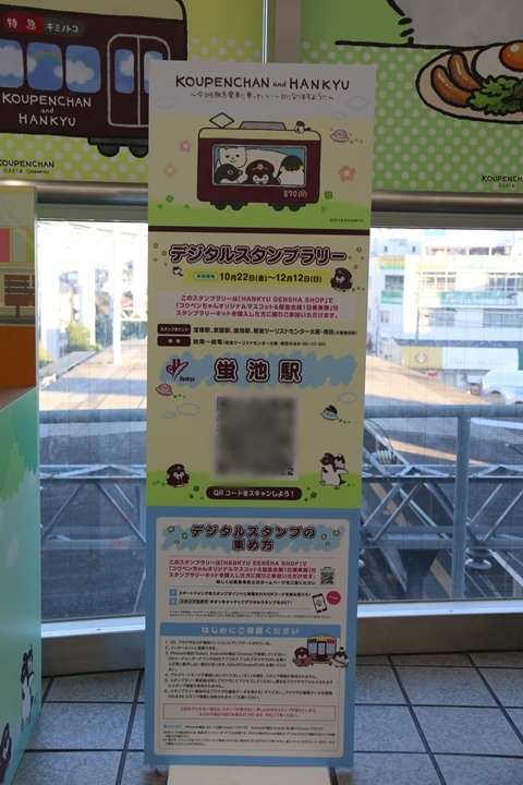 | まずは蛍池駅で下車します。実はこの日、10月22日(金)から12月12日(日)まで開催された阪急電鉄 コウペンちゃん×阪急電車 デジタルスタンプラリーに参加しました。まずは蛍池駅で1つ目のスタンプをゲット。 |