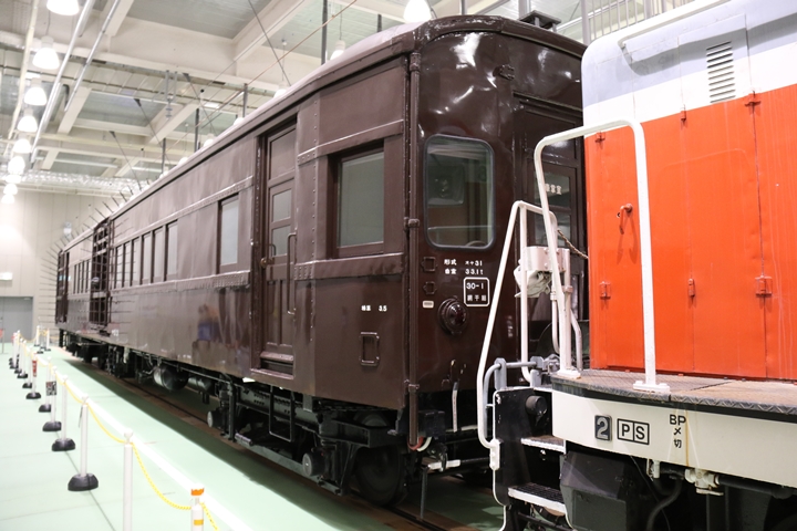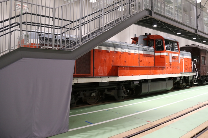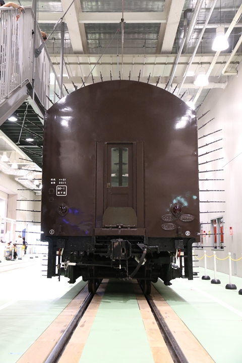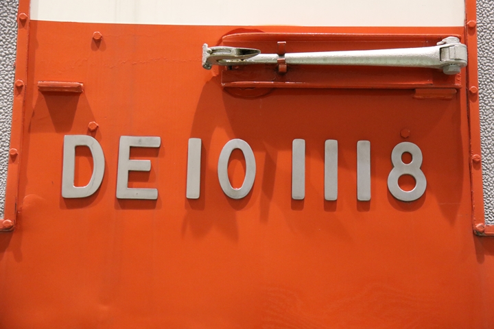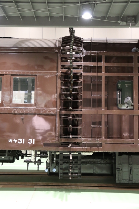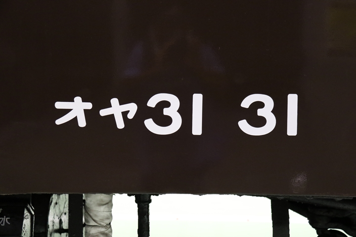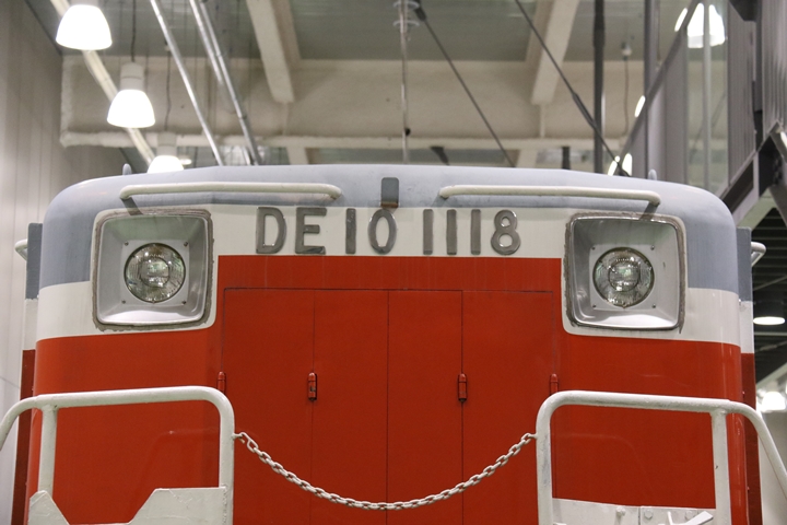 | 本年8月13日(土)に訪問した京都鉄道博物館、一番の目的は7月30日(土)から今月14日(日)まで特別展示されている「オヤ31形31号車」を撮影するため。オヤ31形31号車は昭和12年にスハフ34525として新造、2度の改造を経て建築限界測定車となりました。測定用の矢羽根がかんざしの様に見える事から「おいらん」と呼ばれています。8月12日(金)から14日(日)までの3日間はDE10-1118と連結し検測時の姿を再現しており撮影に行ってきました。DE10形ディーゼル機関車は昭和41年昭和53年にかけて708両が製造、台車の動軸を3軸+2軸の5軸とし13t級の軽軸重を実現、ボンネットの長さが前後非対称で運転室が中心にない「セミ・センターキャブ」と呼称される形態です。まずは京都方から正面を撮影。 |