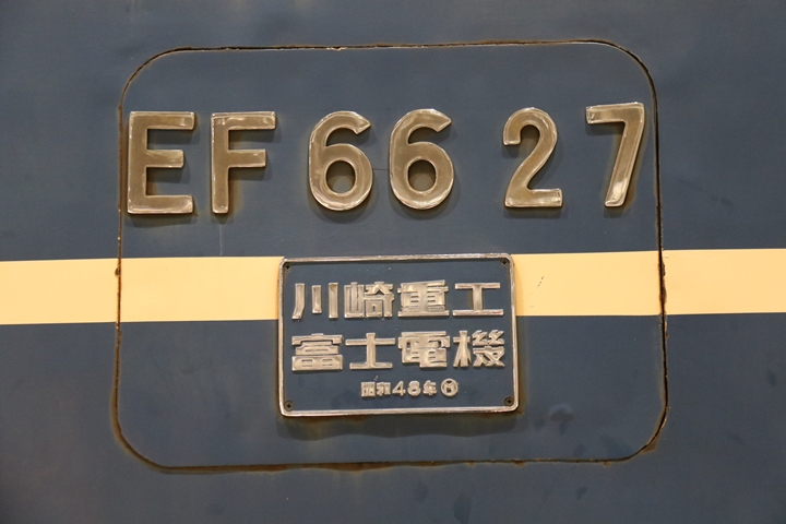 | 続いてEF66形電気機関車、EF66形は昭和41年に試作されたEF90形電気機関車の量産車として国鉄が昭和43年から昭和49年までに55両、JR貨物が平成元年から平成3年までに33両を新造。昭和44年、ブルーリボン賞を受賞、機関車でブルーリボン賞を受賞したのはEF66形のみである。27号機は「ニーナ」の愛称で親しまれていましたが昨年3月のダイヤ改正で定期運用から引退しました。まずは京都方から正面を撮影。 |