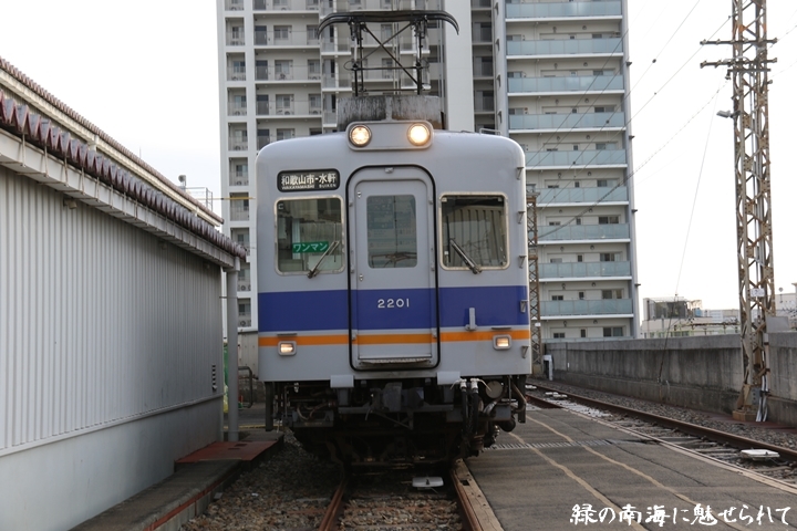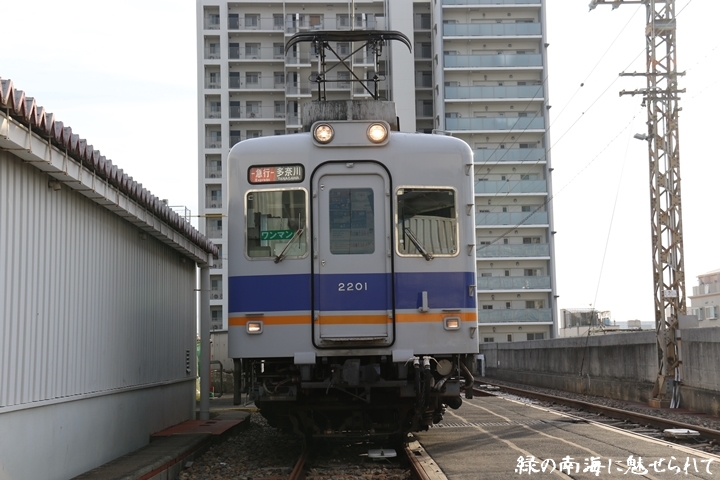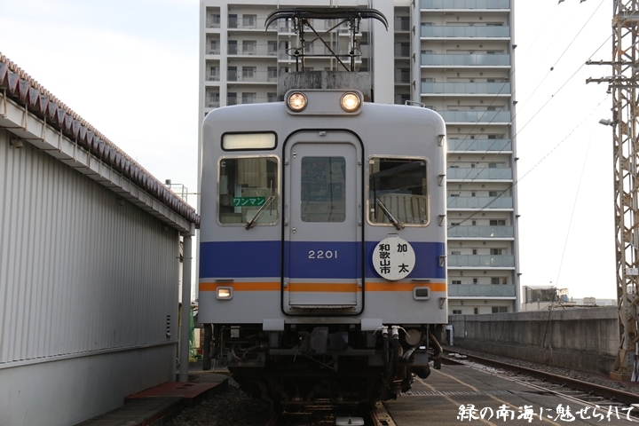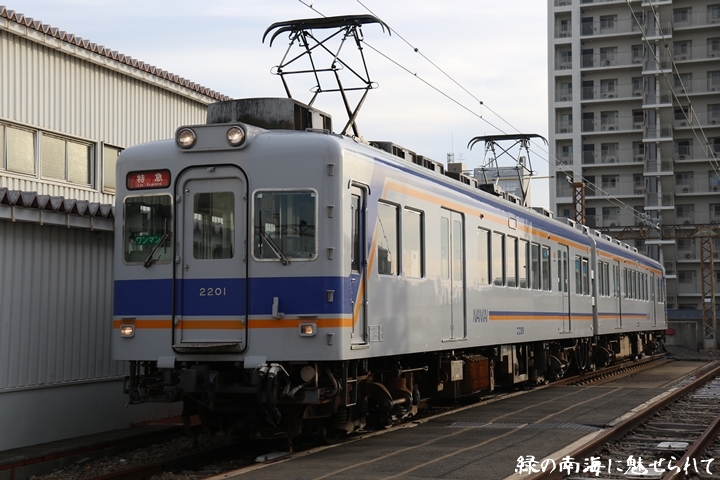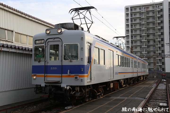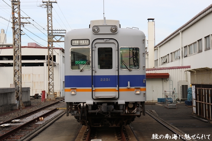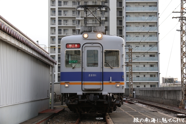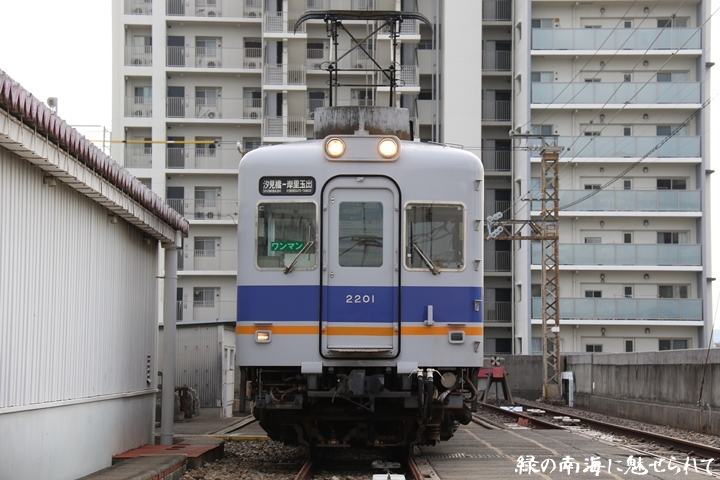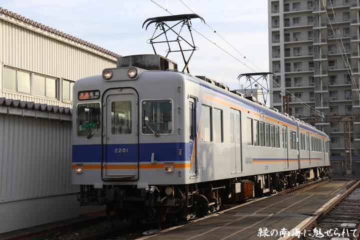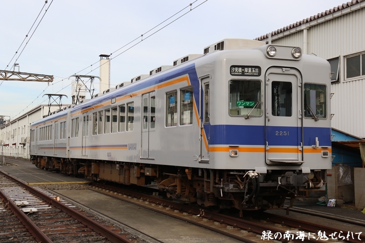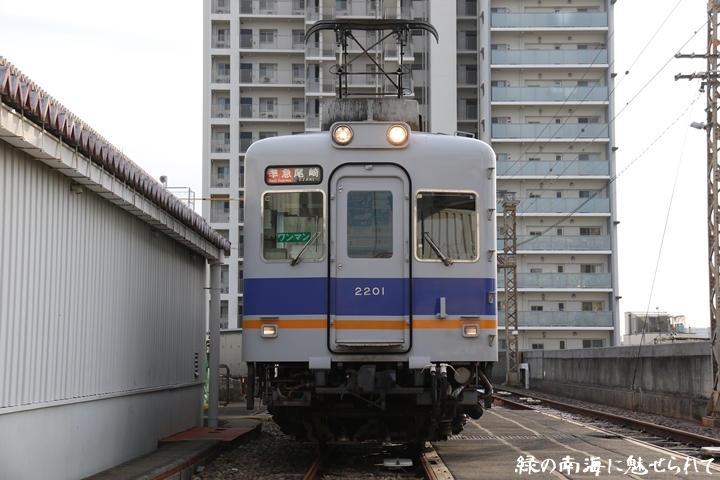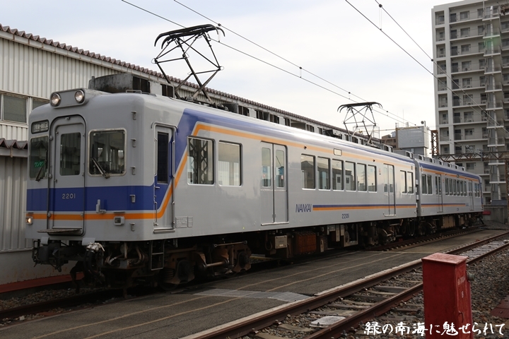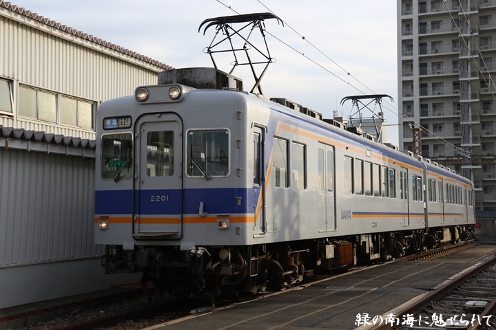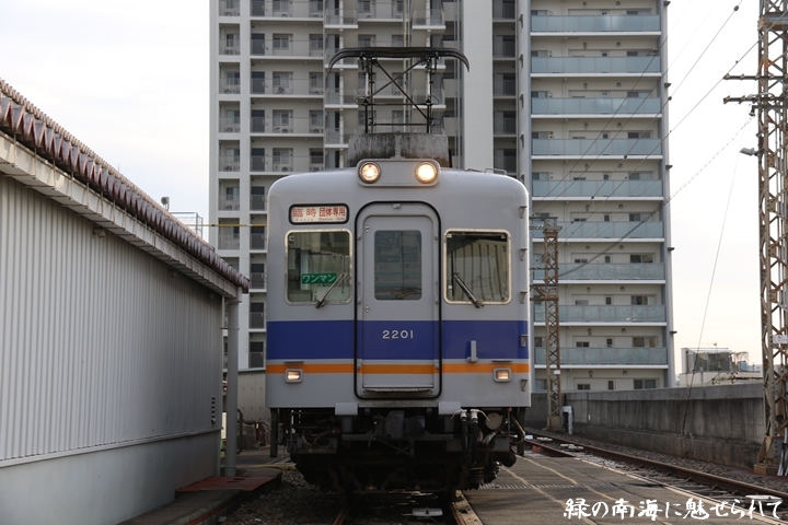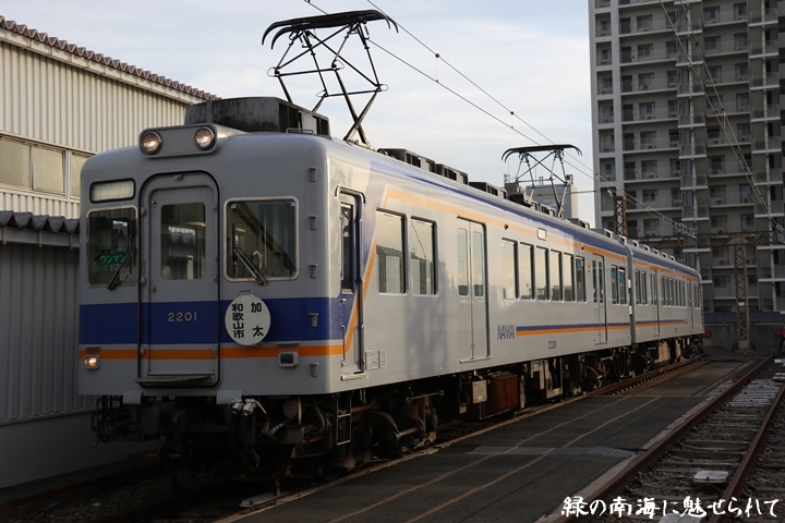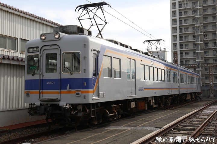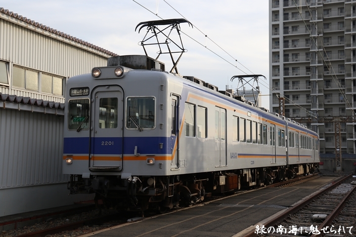 | そして受け付けを済ませます。実はこの日、鉄道友の会 阪神支部による2200系撮影会があり私も行ってきました。2200系は昭和44年から昭和47年の間に高野線の山岳区間直通運行用として22000系として2両編成16本合計32両を新造、平成5年以降の更新により高野線大運転で継続運用するため3編成6両が改造、2200系に改番されました。現在、1編成は観光列車「天空」として運行、1編成は本年8月15日付で銚子電気鉄道へ譲渡されオリジナルは残り1編成となりました。実は当初、前述のクラブツーリズム鉄道部主催の「復刻デザインの6000系貸切列車で行く!小原田車庫見学ツアー」に申し込んでいたのですが日にちかぶってしまいどちらに行こうか悩みに悩んだ結果、2200系撮影会を選びました。とりあえず今回はダイジェスト版で御紹介、コンプリート版は改めて御紹介します。まずは難波方から標識灯二灯を撮影。 |