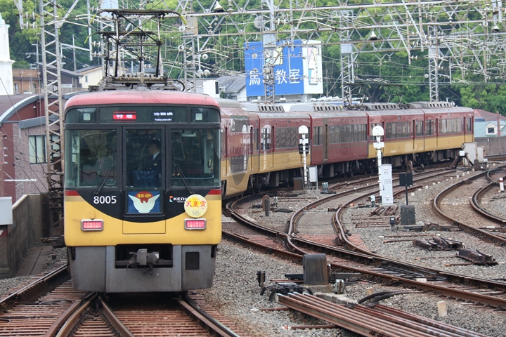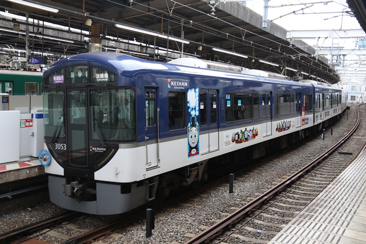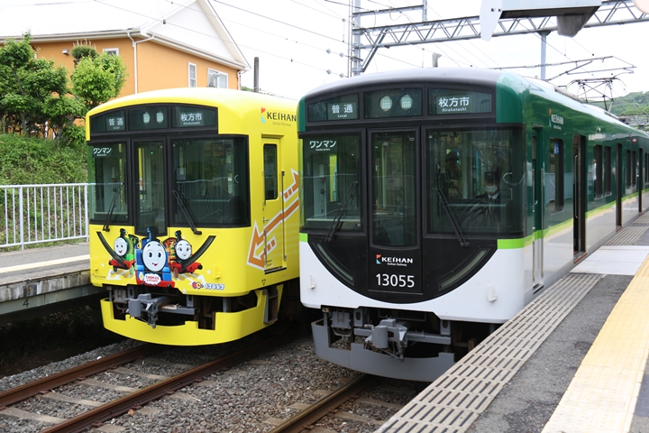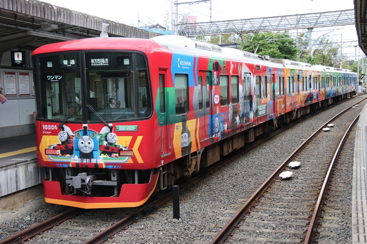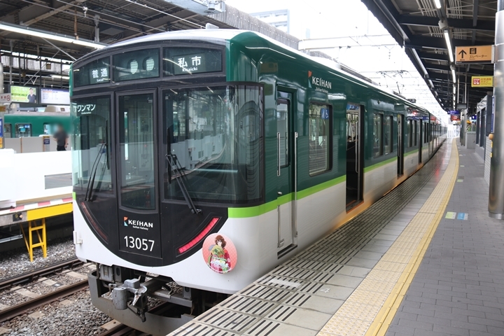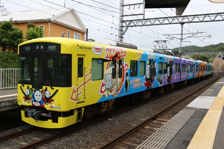| 途中、枚方市駅で下車。天皇賞ヘッドマークの8000系や3000系「きかんしゃトーマスとなかまたちPRトレイン」、そして響け♪ユーフォニアムヘッドマークの13000系を撮影します。 |