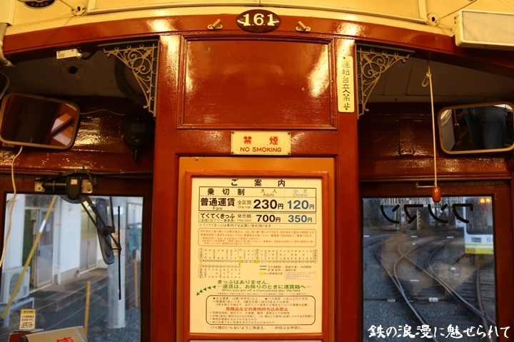 | 14時に始まった撮影会は16時に終了、17時に再集合しモ161号車による乗車会です。17時20分に我孫子道車庫を出発、中でも宿院−浜寺駅前間は走行音や動画記録の時間として設けられていました。 |