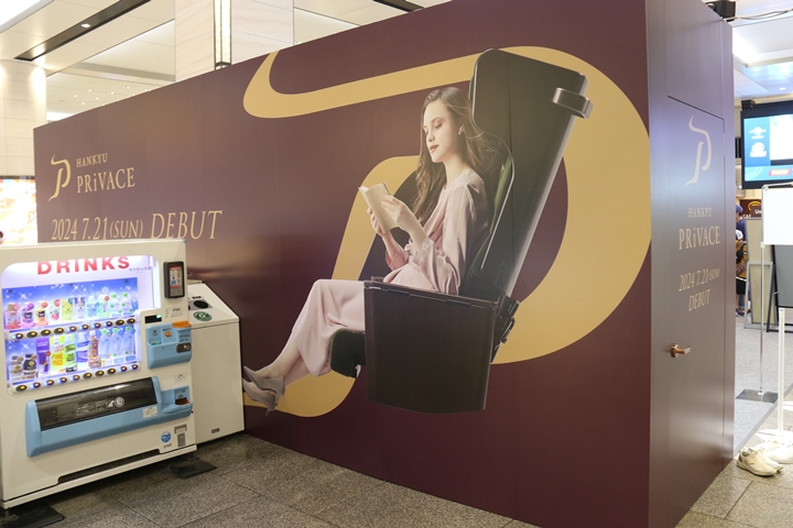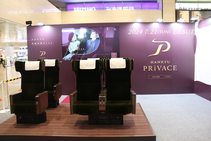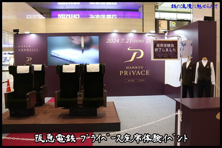 | 本年6月16日(日)、私は阪急大阪梅田駅へ向かいこの日から6月23日(日)まで開催されるプライベース座席体験イベントへ向かいます。無人状態で撮りたかったので9時30分頃に到着したのですが既にスタッフが打ち合わせをしていてかろうじて撮影した画像です。ちなみに11時開始時にはものすごい人が列をなしており私も列にならびわずかな時間だけプライベースを楽しみました。 |