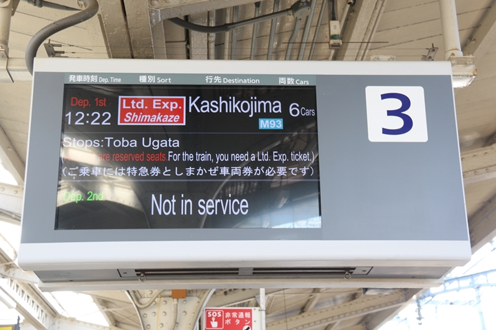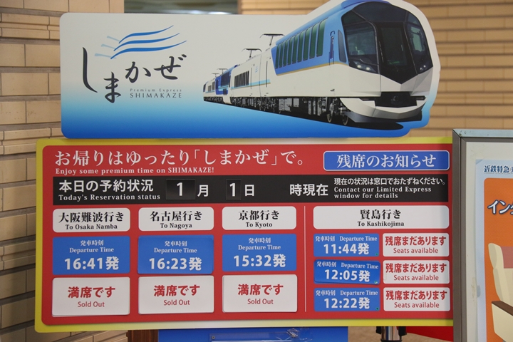 | 本年1月1日(月・祝)、私は元旦恒例の伊勢神宮への初詣を済ませ宇治山田駅へ。帰路の大阪難波行き特急券を買い求めると既に売り切れ。約1時間後しか特急券を取れずどーしようか?途方に暮れてた時、賢島行き特急しまかぜに空席があると眼に入り念願のしまかぜに乗り鉄する事にしました。ただ…、折り返しの大阪難波行き特急に乗るには鵜方駅で乗り換えなければならないとの事。わずか36分の乗り鉄です。 |