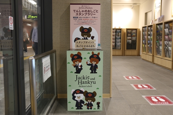 | 実はこの日、4月24日(水)から7月8日(日)まで開催されていたJackie & Hankyu でんしゃのおしごと スタンプラリーに参加しました。まずは阪急京都観光案内所にて1つ目のスタンプを押印。 |