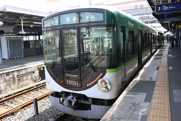 THE PHOTO BANK OF VARIOUS TRAINS 京阪電気鉄道 響け♪ユーフォニアム×源氏物語・宇治十帖 令和6年5月18日、宇治駅にて撮影 本年5月18日(土)、私は"京都鉄道博物館"へ行った帰り、京阪中書島駅で下車します。 そして「響け♪ユーフォニアム3」ヘッドマークを掲出した13001Fを撮影。