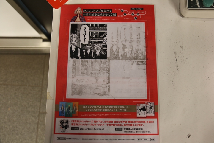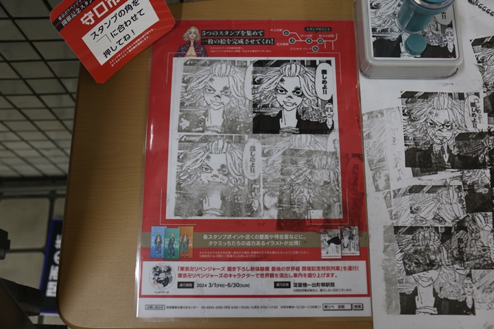 | この日の一番の目的は京都鉄道博物館だったのですが3月1日(金)から6月30日(日)まで行われた「東京リベンジャーズスタンプラリー」にも参加してきました。まずは淀屋橋駅で1つ目のスタンプを押印。 |