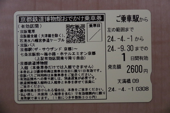 本年3月7日(木)、私は淀屋橋駅で京都鉄道博物館おでかけ乗車券を購入します。
