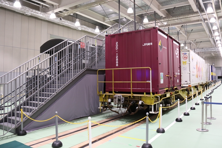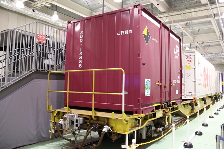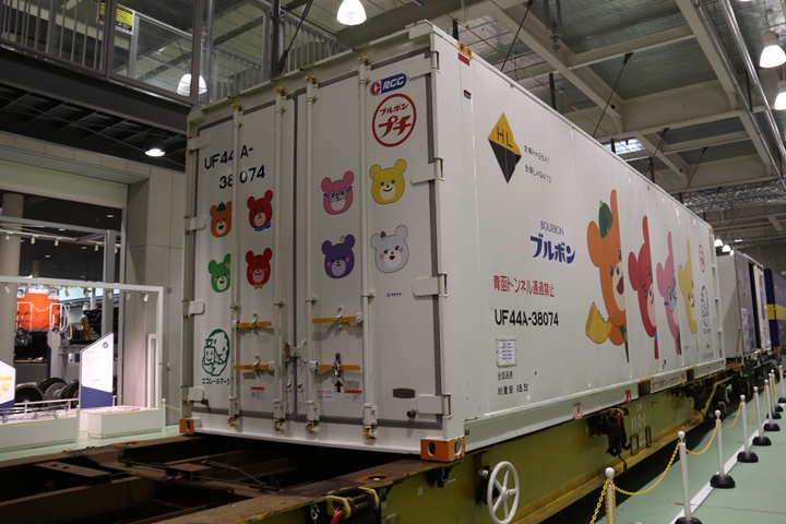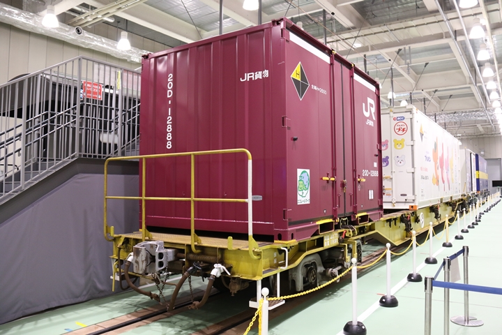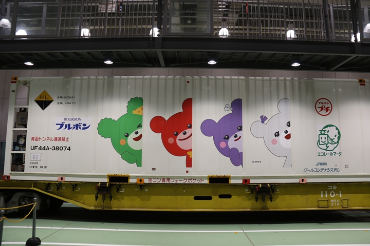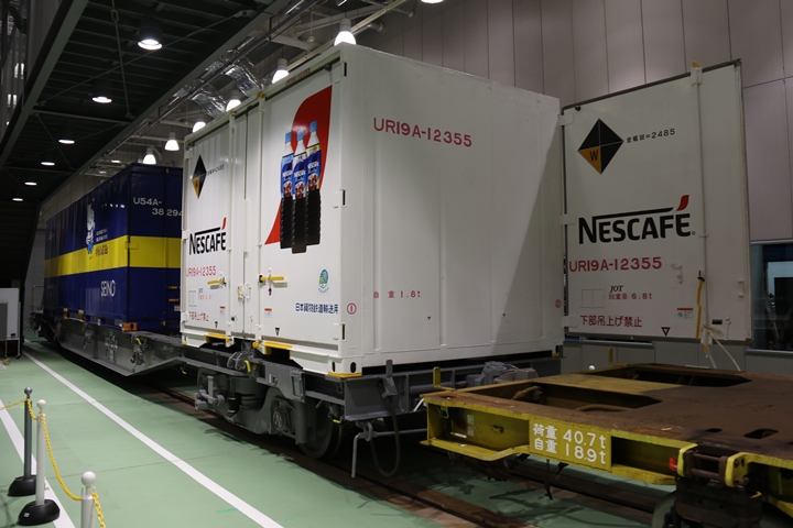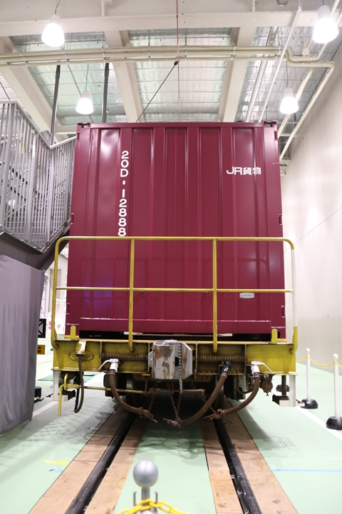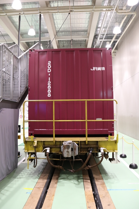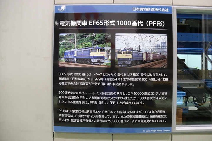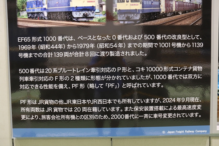| 私が京都鉄道博物館へ向かった理由、それは9月12日(木)から9月24日(火)まで特別展示されているJR貨物所属車両を撮影するため。今回はEF65形式2000番代直流電気機関車、コキ107形式コンテナ貨車、コキ110形式コンテナ貨車、ヨ8000形式8891号車掌車が特別展示されました。当初、EF510形式7号機交直流電気機関車「レッドサンダー」の予定でしたが4日前の9月8日(日)、突然EF65形式2000番代直流電気機関車へ変更とアナウンスされました。まずは京都方から正面の並びを撮影。 |