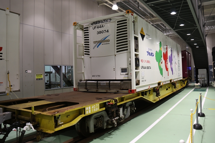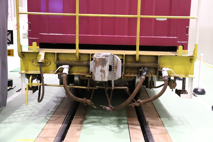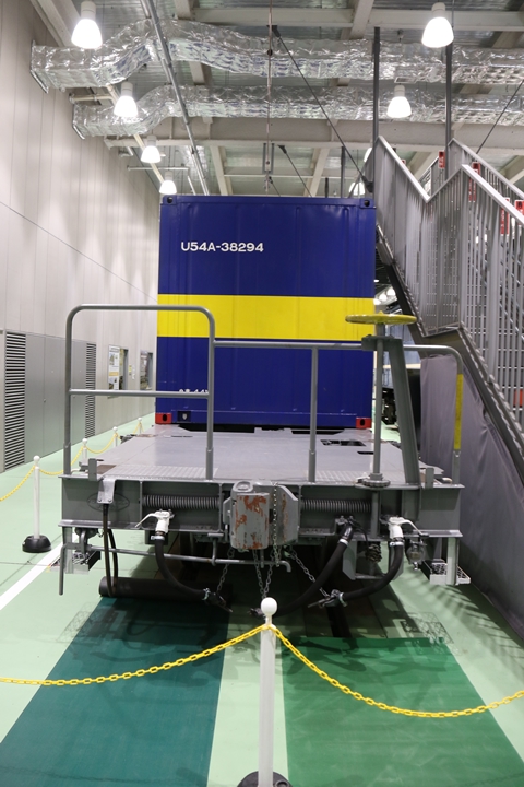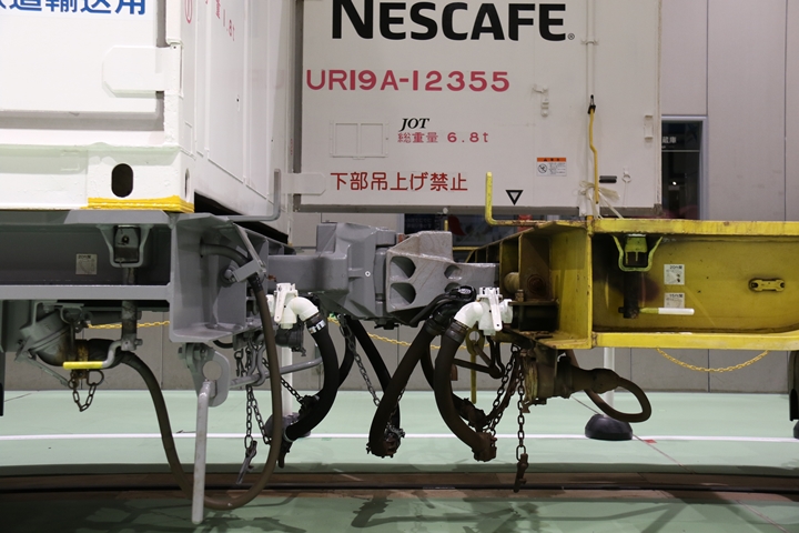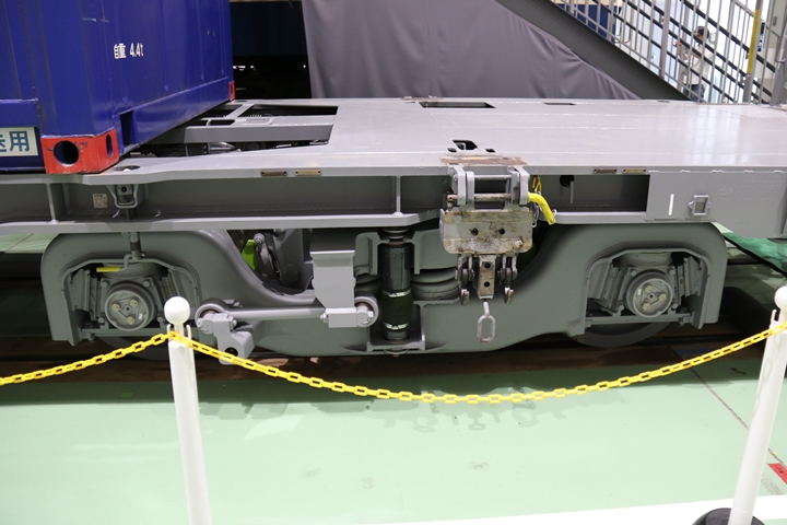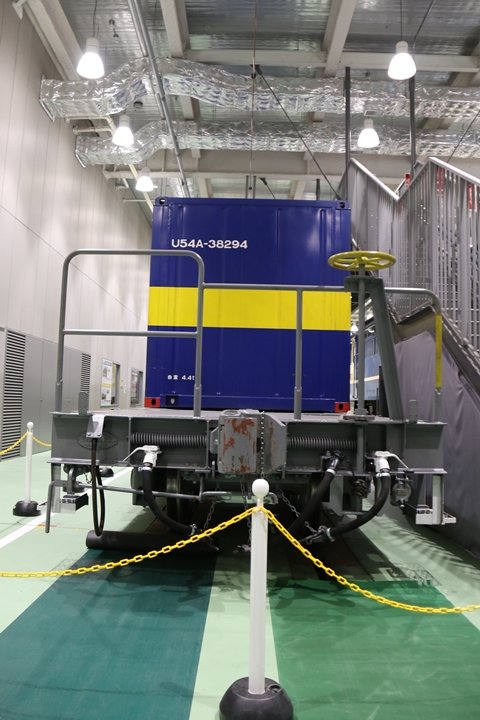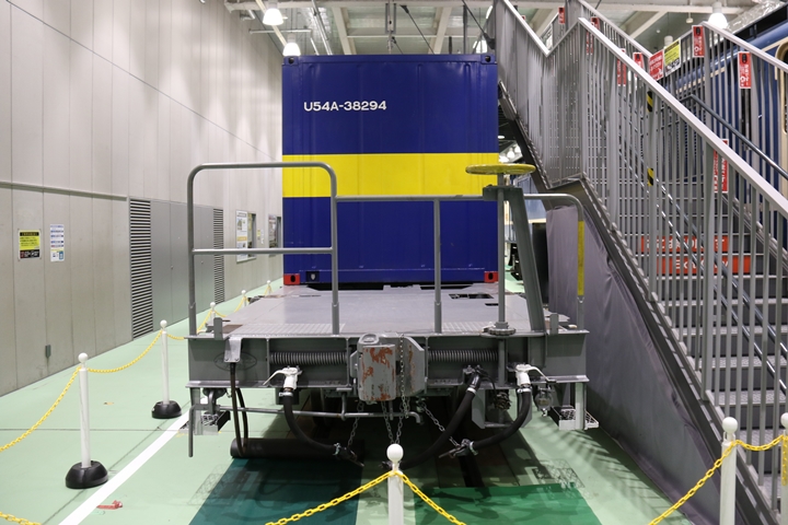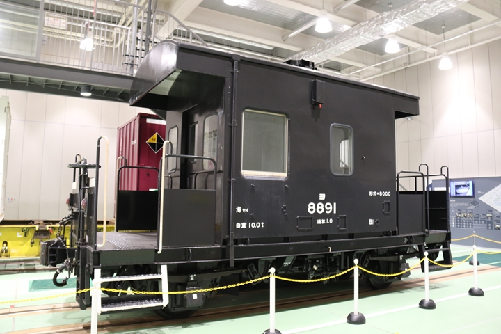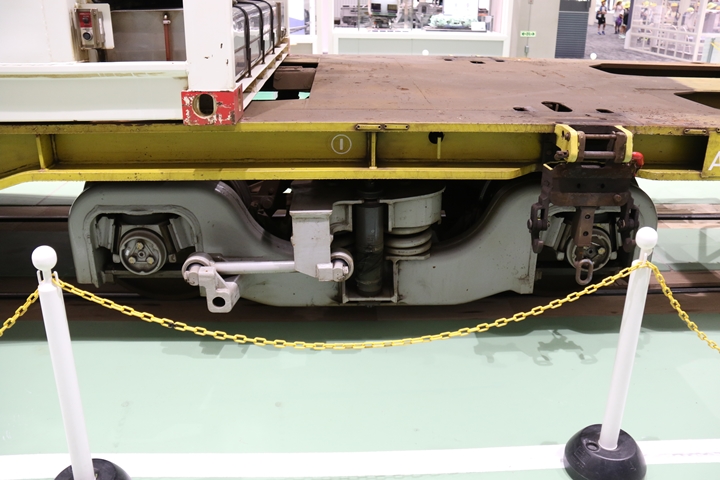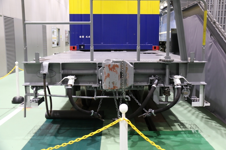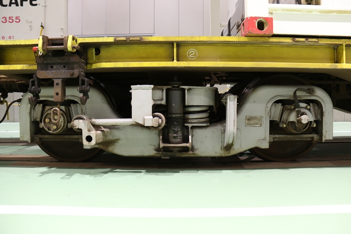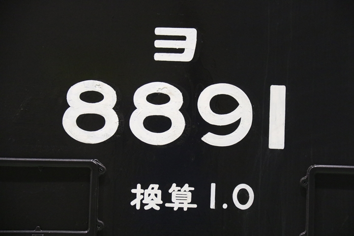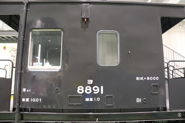 | EF65-2070車の奥にはヨ8000-8891車が展示されていました。まずは京都方からヨ8000-8891車の正面や側面、パーツ、台車等を撮影。 |
