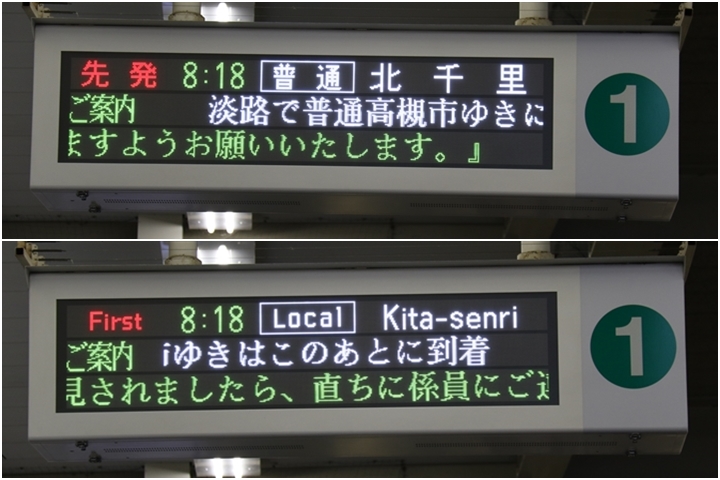 そして北千里行き普通に乗り込み淡路駅で高槻市行きに乗り換えます。