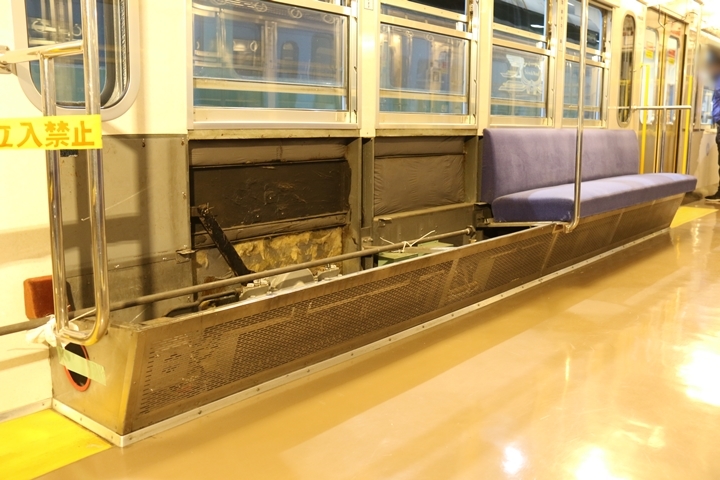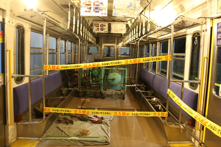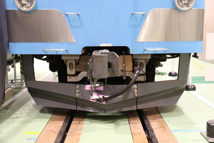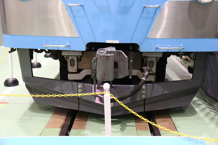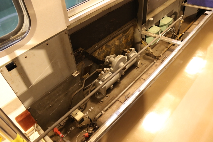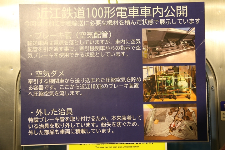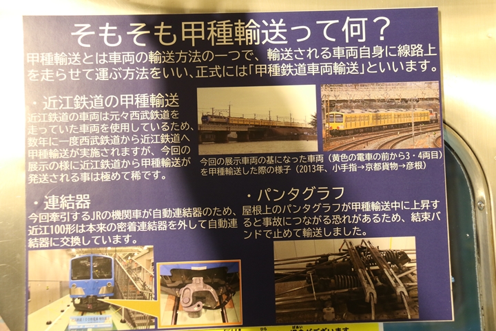 | 大阪方は甲種輸送に必要な機材を積んだ状態で展示されていました。主にブレーキを制御するための機器だと教えてくださいました。 |