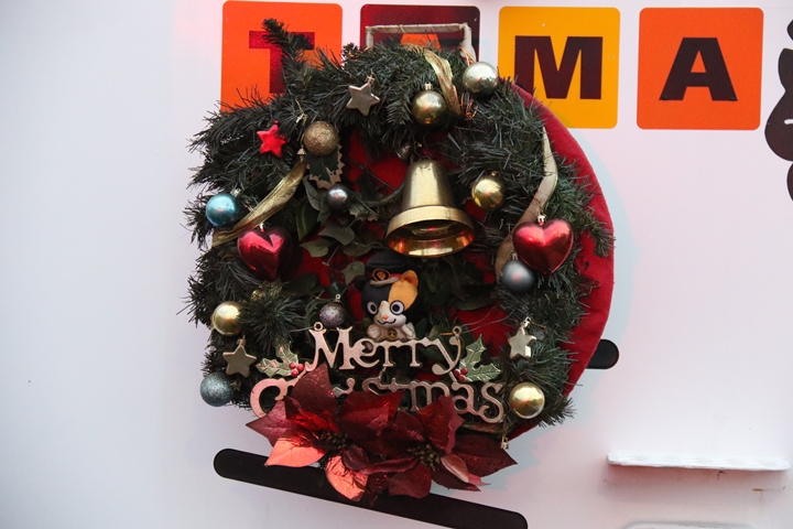 | まずはクリスマス仕様のいちご電車の車内を撮影します。無人状態で撮影したかったので早朝から和歌山電鐵入りしました。 |