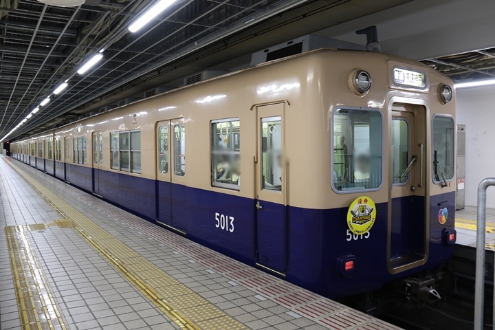 | そして令和5年9月17日(日)、18年ぶりの阪神タイガース優勝を記念し5001形にヘッドマークが掲出され撮影に行ってきました。 |