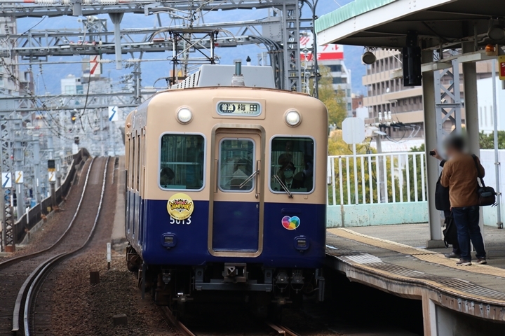 | 令和5年11月11日(土)、35年ぶりの阪神タイガース日本一を記念し5001形にヘッドマークが掲出され撮影に行ってきました。 |