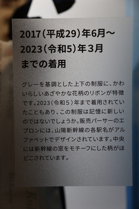 コチラは歴代の山陽新幹線パーサーの制服です。