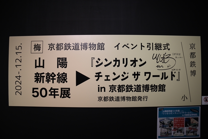| 「山陽新幹線50年展」から「シンカリオンチェンジザワールド in 京都鉄道博物館」へイベント引継式の硬券、サイン入りです。 |