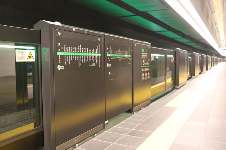 | 本年3月1日(土)、約1ヶ月前の1月19日(日)に延伸開業したコスモスクエア−夢洲間を乗り鉄すべくまずはコスモスクエア駅へ向かい新しくなった駅票や夢洲方のトンネルを撮影。 |