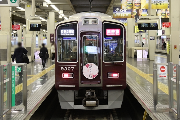 | 本年3月15日(土)、私は阪急大阪梅田駅から京都河原町行き準特急に乗り込み途中、桂駅で嵐山行き普通に乗り換えます。 |