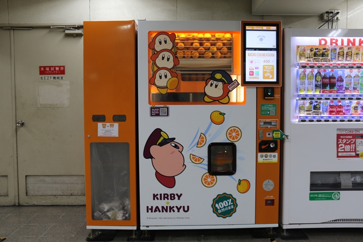 | 川西能勢口駅へ戻ってきて大阪梅田行き急行に乗り込み終点 大阪梅田駅で下車し星のカービィオレンジジュースを撮影。 |