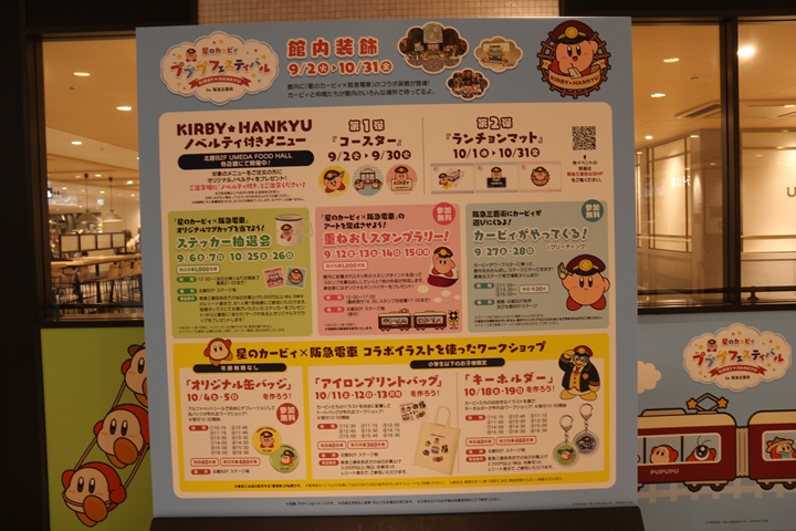 | 実は9月14日(日)の10時に足を運んだ阪急三番街 北館B2階UMEDA HALL、無人状態のを撮影したかったのでオープンしてすぐに「星のカービィ×HANKYU×HANKYU」を撮影に行ってきました。まずは館内の装飾。 |
