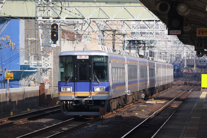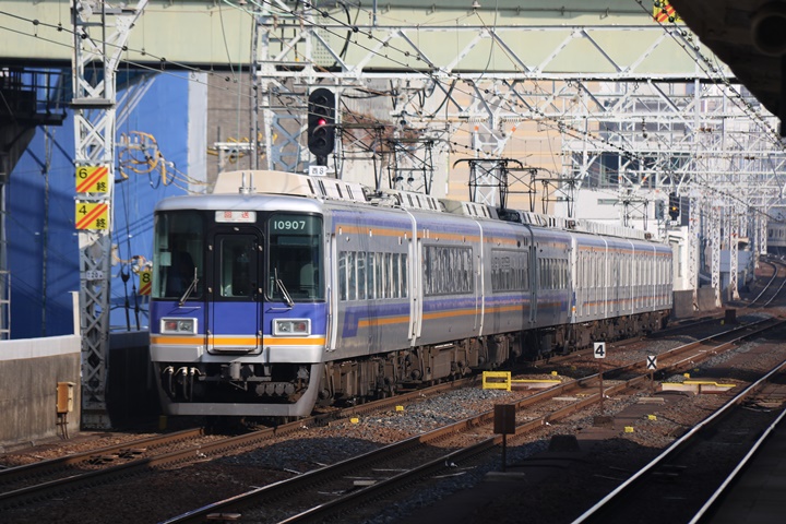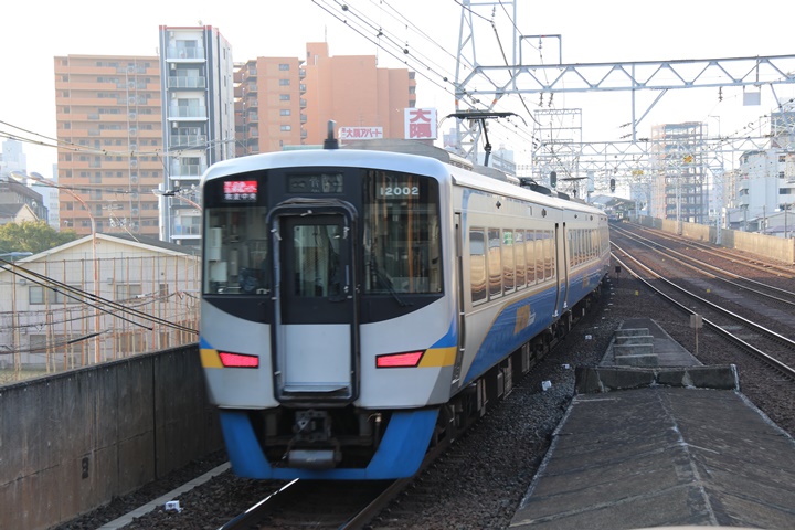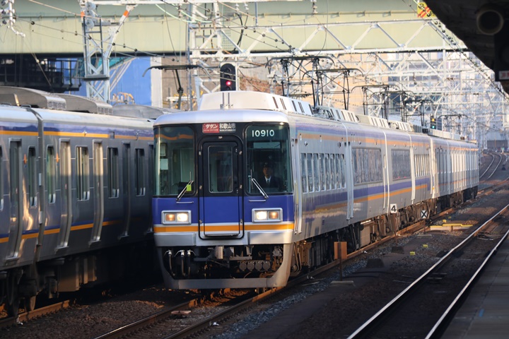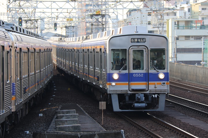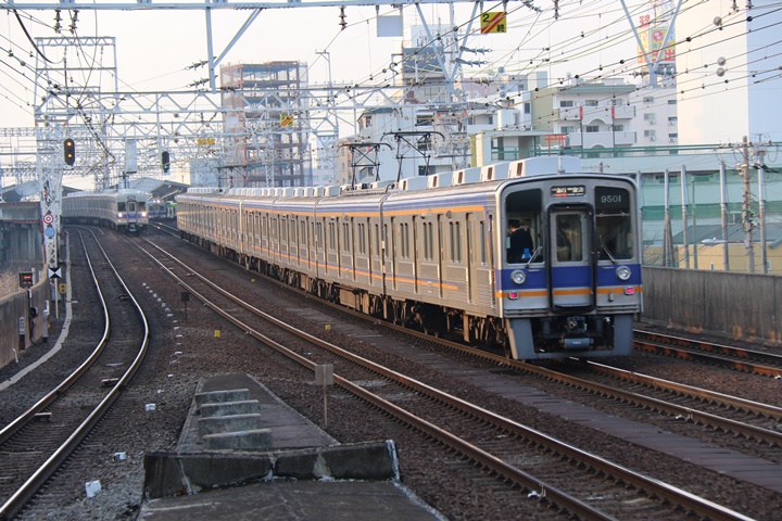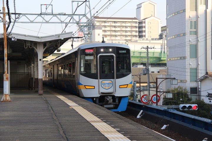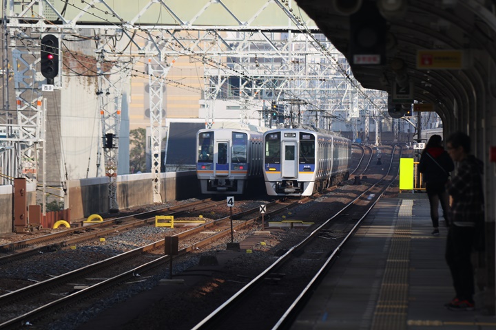 | 続いて3rd CHAPTER、新今宮駅8時9分発南海線6516レ、同駅8時10分発高野線2404レの画像から御紹介します。当CHAPTERの注目は泉北ライナー64号、12000系サザンプレミアムが代走しています。 |