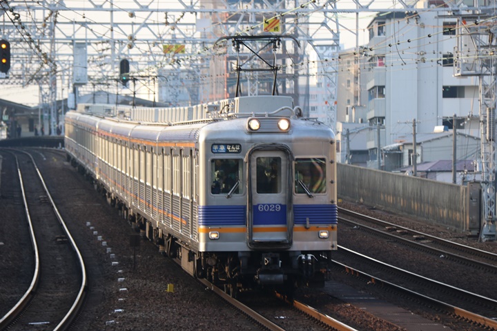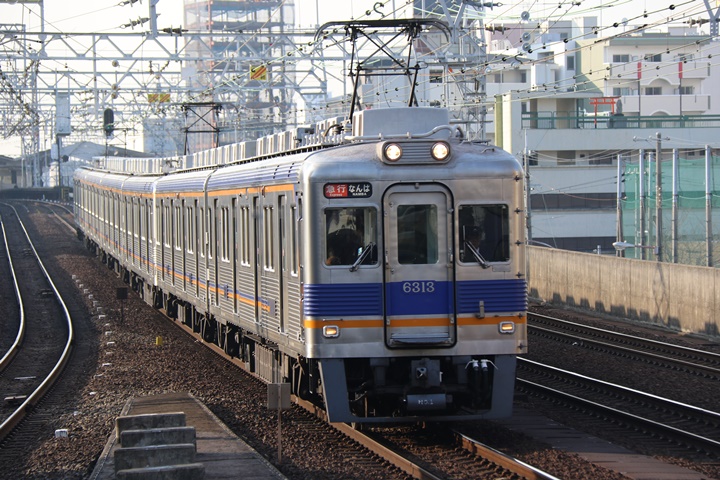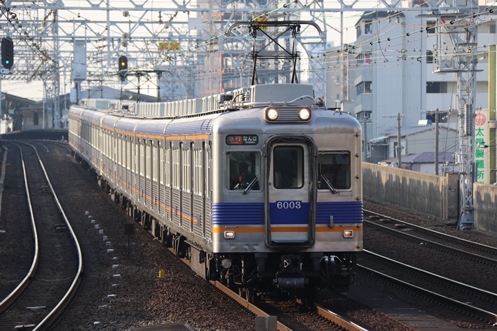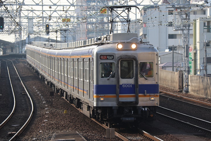 | 続いて8th CHAPTER、難波駅9時25分発高野線0205レ、新今宮駅9時26分発南海線2116レの画像から御紹介します。当CHAPTERの注目は太陽が輝く中、最古参6001Fが輝きながらやって来ました。6001Fは昭和37年/1962年12月25日より運行開始、昨年末で55歳を迎えました。 |