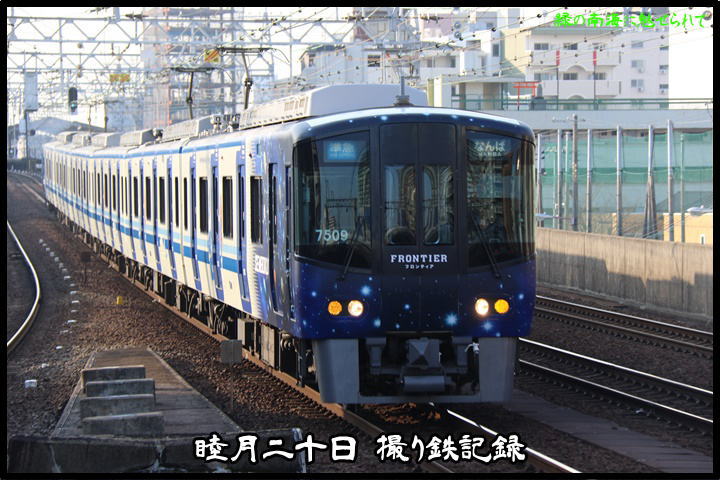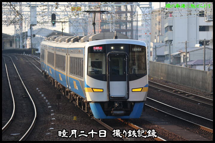 | 弊ブログは同じ様な画像が多いとの指摘が多いので本年度から少し志向を変えようと思います。その中で最近の私の嗜好としては早朝から今宮戎駅で撮り鉄する事。そこであえて指向を変えて時系列に画像を整理してみました。逆に言えば特定のテーマは全くありません。新企画、題して「撮り鉄記録」。第1回目は本年1月20日(土)、新今宮駅発7時38分南海線6802レの画像から御紹介します。 |