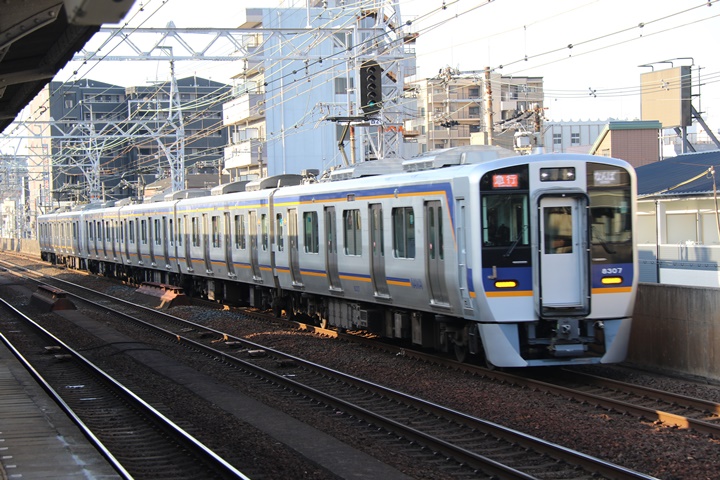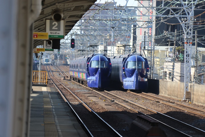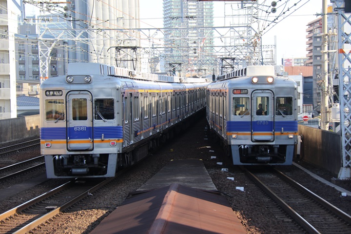 | 続いて3rd CHAPTER、新今宮駅7時15分発南海線6819レ、新今宮駅7時16分発高野線2707レの画像から御紹介します。当CHAPTERの注目は天下茶屋駅7時19分発0602レりんかん2号、高野線では平日にわずか1本のみ運行される8連の特急。この日は30000系が2連でやって来ました。 |
