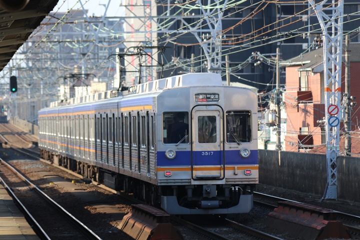 | 続いて2nd CHAPTER、天下茶屋駅7時1分発高野線2708レ、新今宮駅7時2分発南海線0703レの画像から御紹介します。当CHAPTERの注目は50000系、平日ゆえ通勤ラッシュの最中ながらラピートが堂々と疾走します。ただ残念ながら下り上りともにラッピング編成ではありませんでした。 |