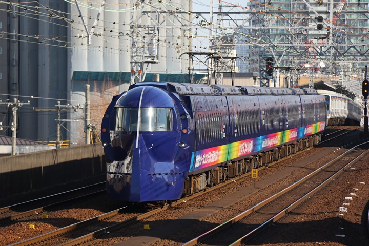 | 続いて11th CHAPTER、新今宮駅8時47分発高野線6423レ、新今宮駅8時25分発南海線下り1711レ(約20分遅れ)、天下茶屋駅8時27分発南海線上り2114レ(約20分遅れ)の画像から御紹介します。当CHAPTERの注目は新今宮駅8時32分発南海線0203レ(約20分遅れ)、万博ラッピングのラピートがやって来ました。 |