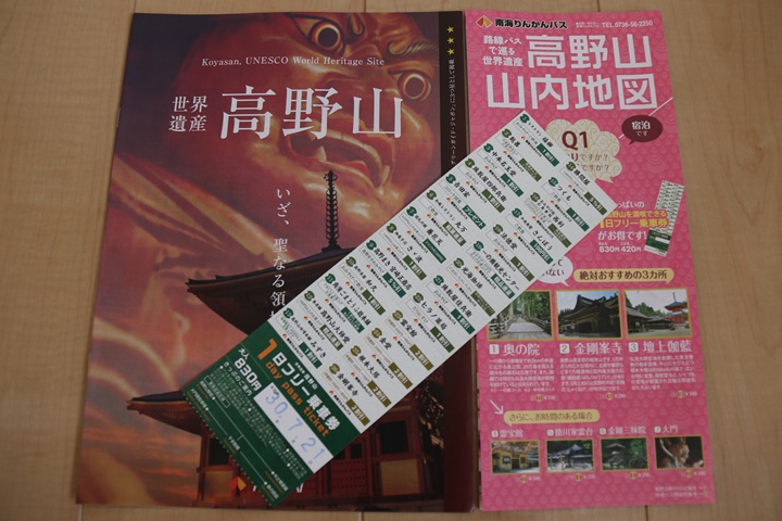 | そして高野山バス1日フリー乗車券を購入。本題の撮り鉄から少し道がそれますがスタンプラリーに加えて"南海のパンフレット"に載っている観光スポットも巡ろうと思います。 |