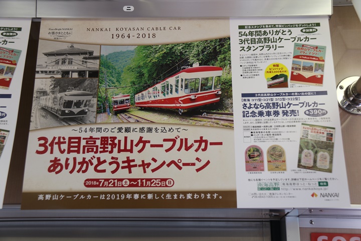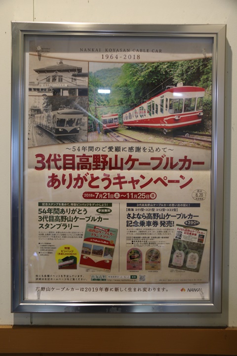 | 地元駅から始発電車に乗り込み今月21日(土)から始まった高野山ケーブルカースタンプラリーへ足を運んできました。しかも運よく、先日新造されたばかりの8308F+8709Fで天下茶屋入りです。パンタグラフもまだ綺麗なのが驚きました。 |