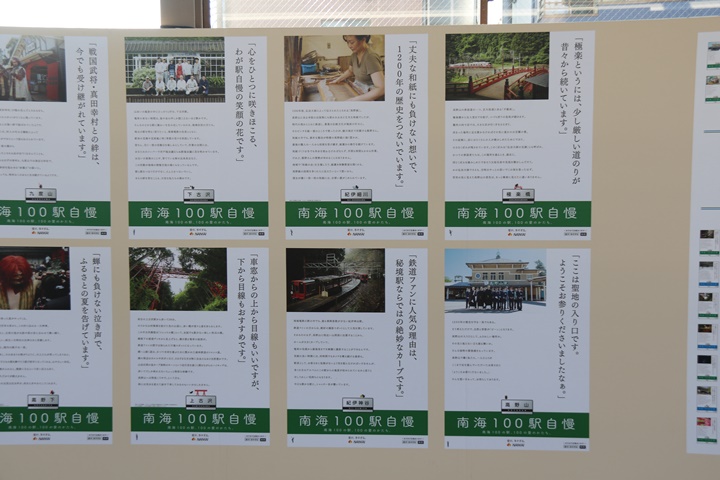 | 右から難波駅・高野山駅・関西空港駅のポスターが貼られてました。何故ココに和歌山市駅がないのか??? 少し疑問符を抱きました。 (^^ゞ汗 |