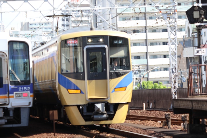 | そして4番線ホームに移動し泉北12000系の寸景を撮影。中でもかねてより撮影したかった1号車の黄金トイレを撮影できたのは電車代払ってわざわざ和歌山市駅まで来た甲斐がありました。 |
