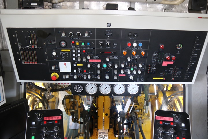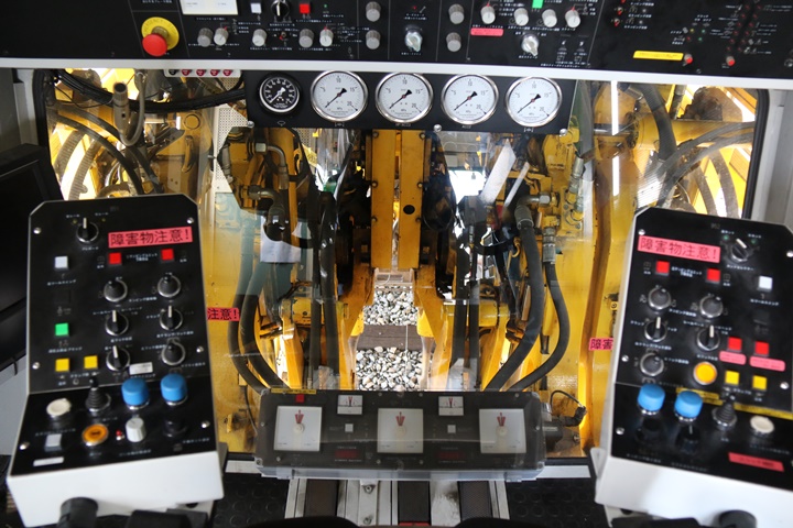 | 前回に続いてマルチプルタイタンパー08-16SH型、通称マルタイ。まず列車の概要を拝読し車内へ。運転席や作業場のコックピットを撮影しました。 |