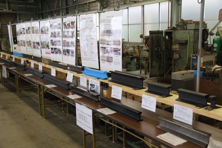 | 古レール展示コーナーを少し拝見し事務所2階へ。思い出ミュージアム、似顔絵コーナー、そして1階のグッズ販売コーナー等を巡回しました。 |