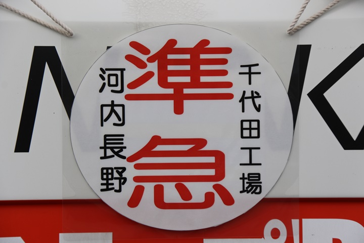 | 私は臨時バスに乗り込み河内長野駅へ向かいます。南海の粋な計らいで正面には「準急 河内長野−千代田工場」のヘッドマークが掲げられていました。 |