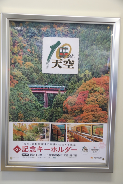 | そして橋本駅で下車、急いで8時26分発天空51号の座席指定券を買いに走り運よく1枚だけなら大丈夫との事。ちなみに駅構内は天空卯10周年に因んだポスターが多数掲示されていました。 |
