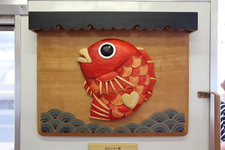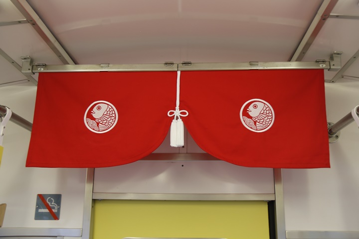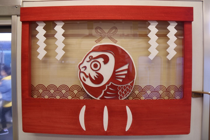 緊急事態宣言で外出自粛の中、少しホッコリネタを。めでたいでんしゃ三編成の魅力を比較する企画第2弾、今回は車内の吊り革、中吊り、縁起物を比較してみました。まずはさちの吊り革。