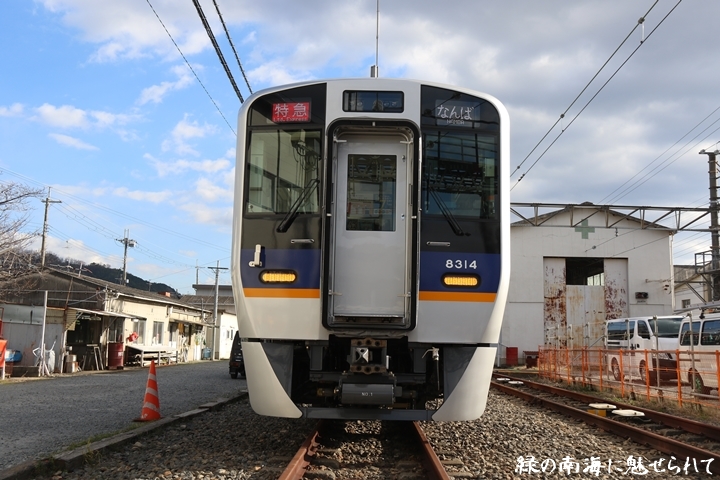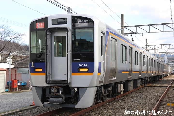 | 本年2月1日(土)に行われた鉄道友の会 阪神支部による高野線8300系撮影会。8300系は平成27年10月8日より南海線で運行開始、令和元年11月22日から6000系72両を令和5年までに全て置き換える目的で高野線でも内装をマイナーチェンジした3次車が運行開始しました。まずは8314F4連を橋本方から編成写真を撮影。 |