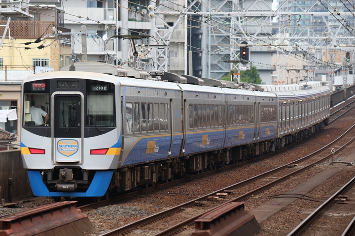 | 続いて2nd CHAPTERでは天下茶屋駅13時52分発高野線2744レ、新今宮駅13時52分発南海線0523レの画像から御紹介します。当CHAPTERの注目はリニューアル工事が完了した9503F、この日は12002Fと連結しサザンとして運行されていました。 |