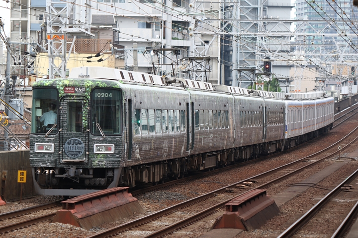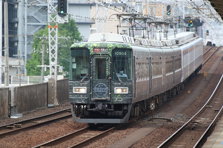 | 続いて7th CHAPTERでは天下茶屋駅15時15分発高野線6610レ、天下茶屋駅15時16分発南海線6842レの画像から御紹介します。当CHAPTERの注目はHYDEサザン、5th CHAPTERで御紹介したHYDEサザンが折り返し新今宮駅15時22分発0529レサザン33号としてやって来ました。 |