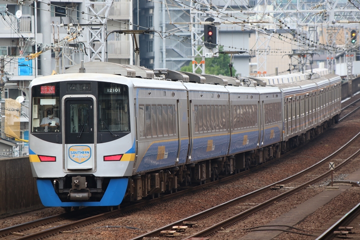 | 弊ブログにおける「撮り鉄記録」も早くも20回目となります。外出自粛要請の影響で7月10日に期限を迎える株主優待乗車券が予定以上に余ったので朝から諸用を済ませいつもとは違う時間にいつもの場所で撮り鉄。まず1st CHAPTERでは新今宮駅13時32分発高野線2739レ、天下茶屋駅13時36分発南海線2146レの画像から御紹介します。当CHAPTERの注目は4月より運行開始した1000系のブツ6、この日早速6855レとしてやって来ました。 |