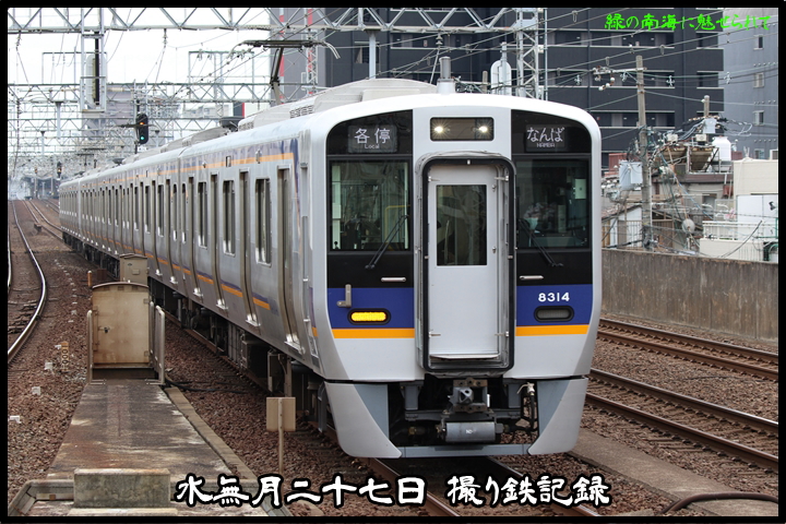 | 続いて4th CHAPTERでは新今宮駅14時22分発南海線0525レ、萩ノ茶屋駅14時24分発高野線6453レの画像から御紹介します。当CHAPTERの注目は8314F、8300系が高野線で運行される様になって半年以上、ようやく見慣れてきました。ちなみにココで8300系を撮影したのはこの日が初めてです。 |