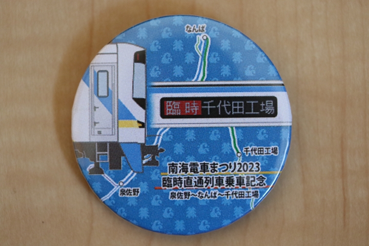 | 残念ながら私は臨時直通列車サザンプレミアムに乗車できませんでしたが乗車された方々に配布されたグッズを知人から譲って頂きました。まずは特製バッジ。 |