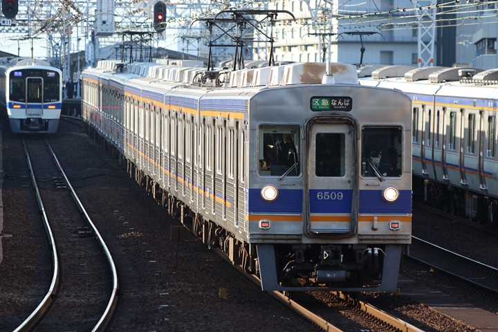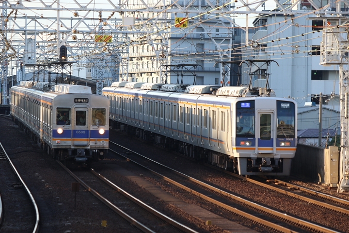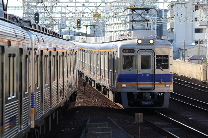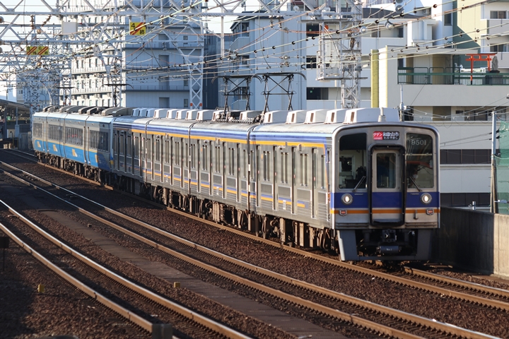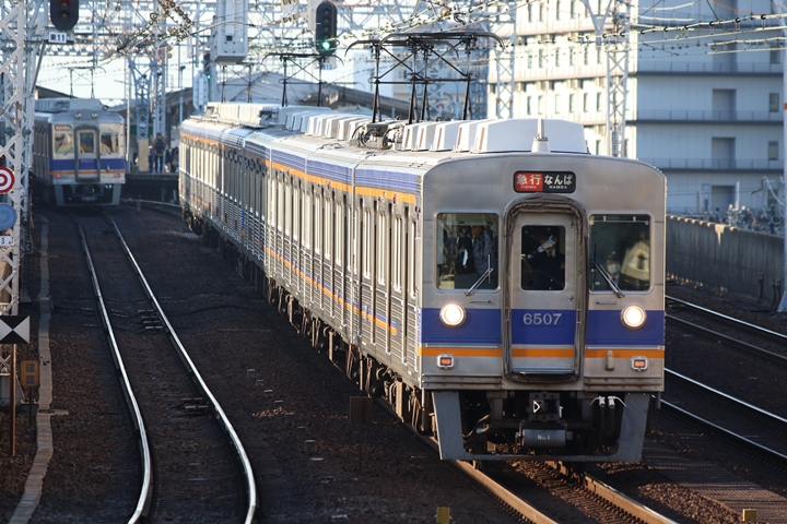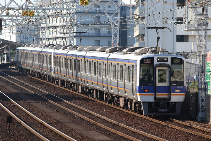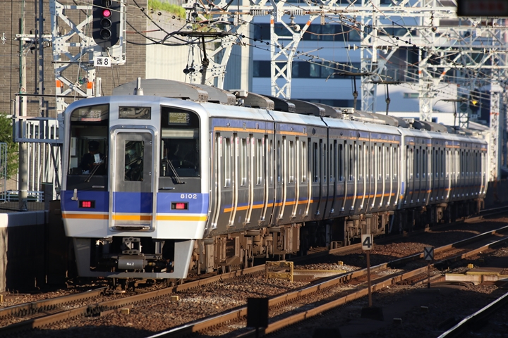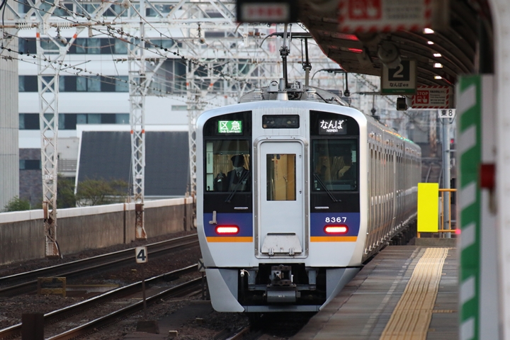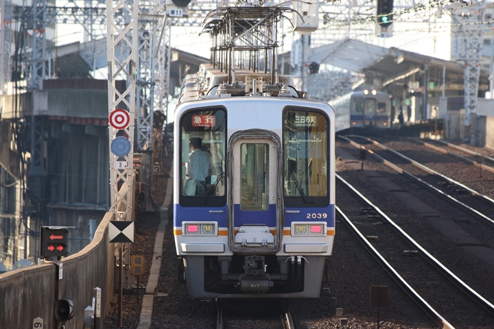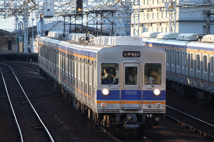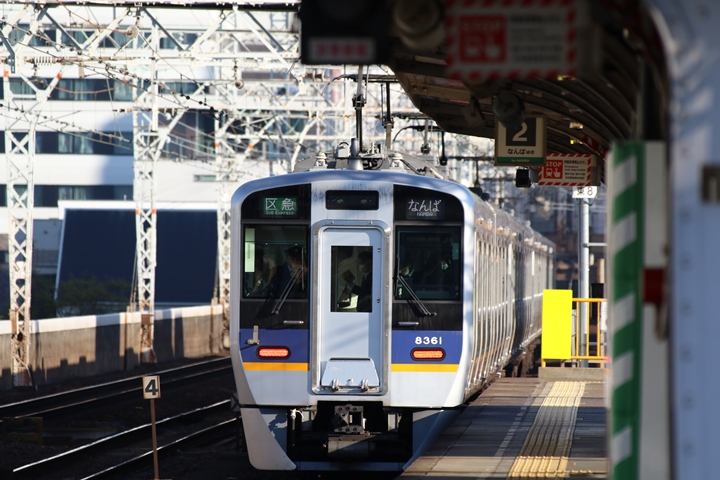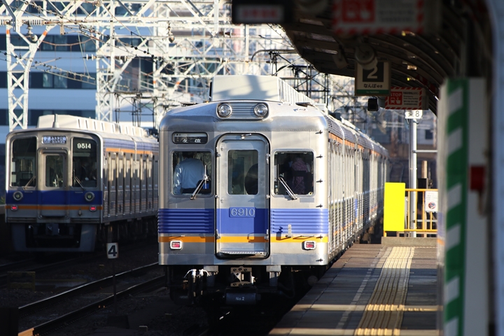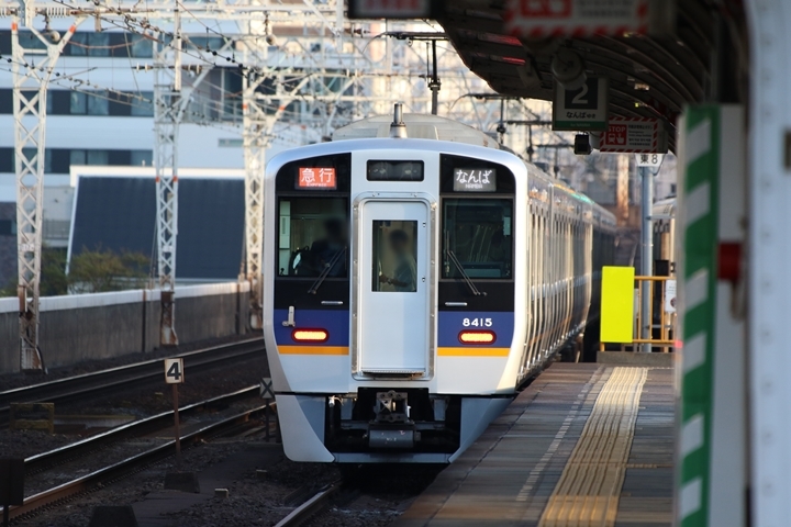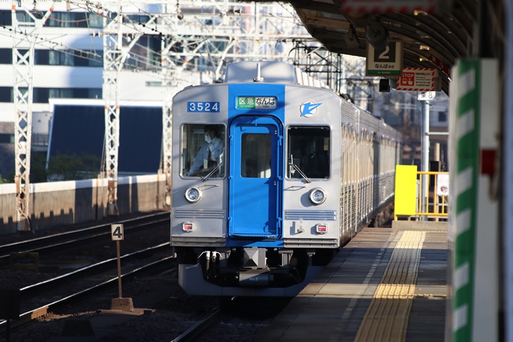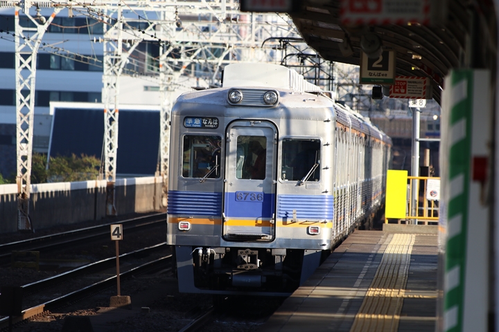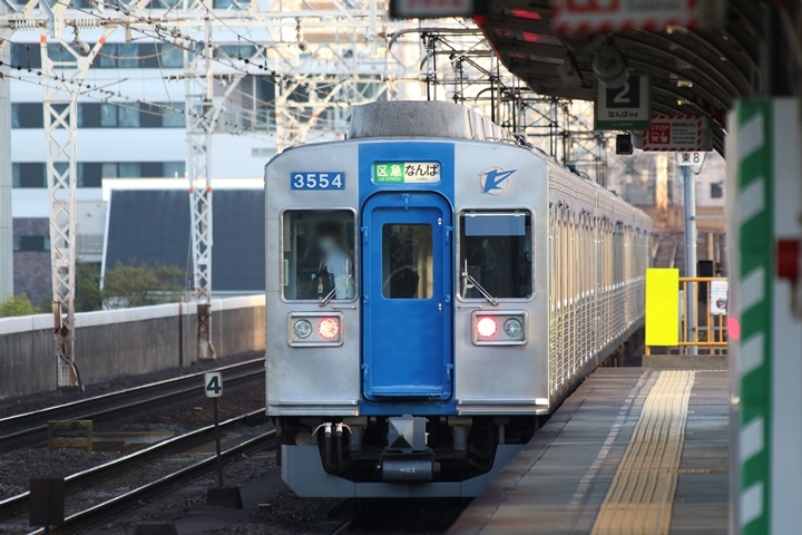 | 弊ブログにおける「撮り鉄記録」も早くも64回目となります。この日は平日ダイヤを今宮戎駅で撮り鉄しました。まず1st CHAPTERでは新今宮駅6時27分発南海線回送車、なんば駅6時29分発高野線急行橋本行きの画像から御紹介します。当CHAPTERの注目は2000系ブツ8連、8個連なるパンタグラフは圧巻の一言です。ちなみに2000系2連は支線用ワンマン工事が行われており今後さらにレアになるかと思います。 |