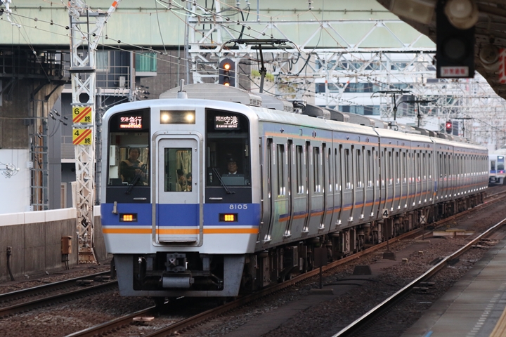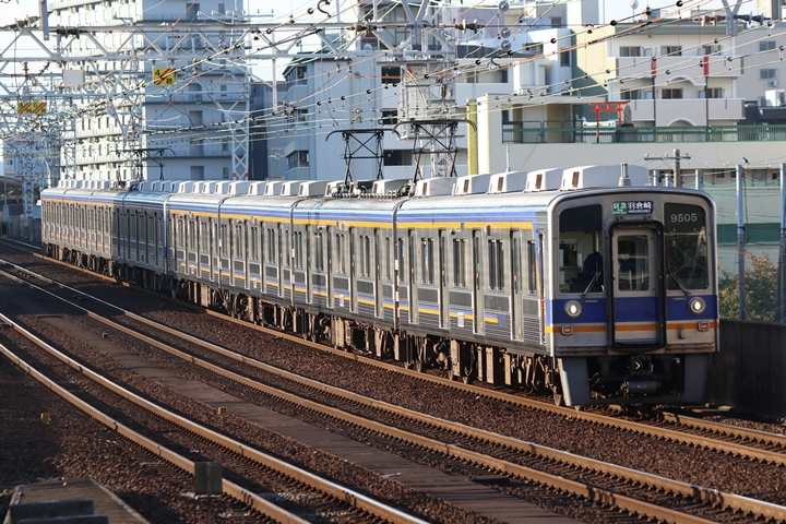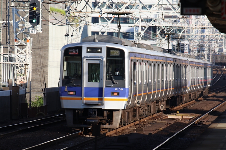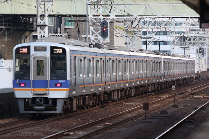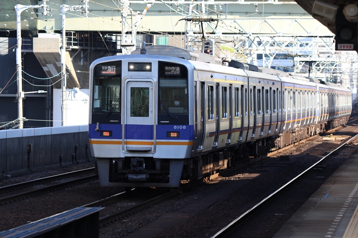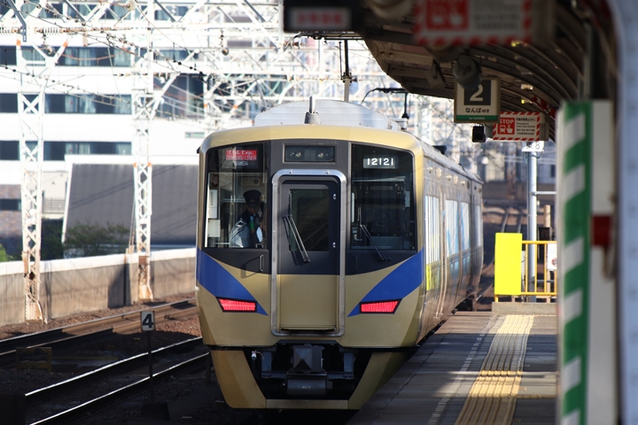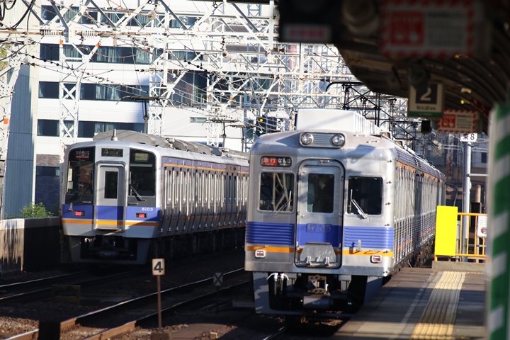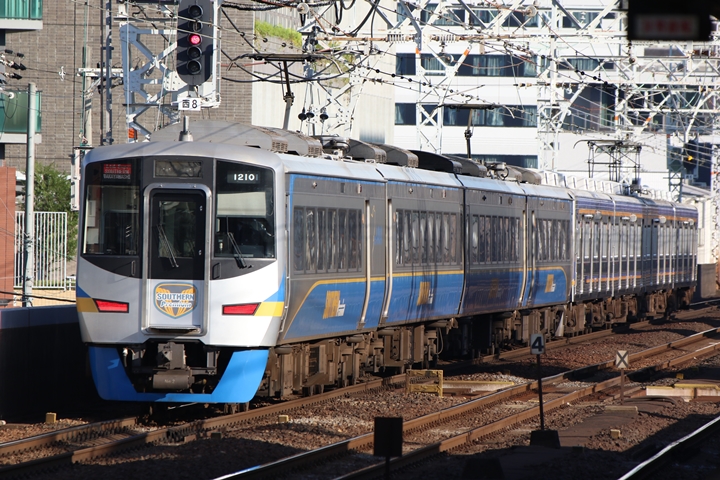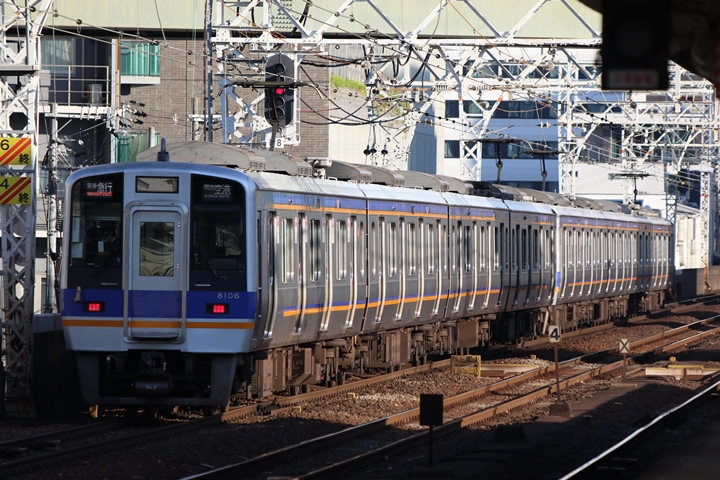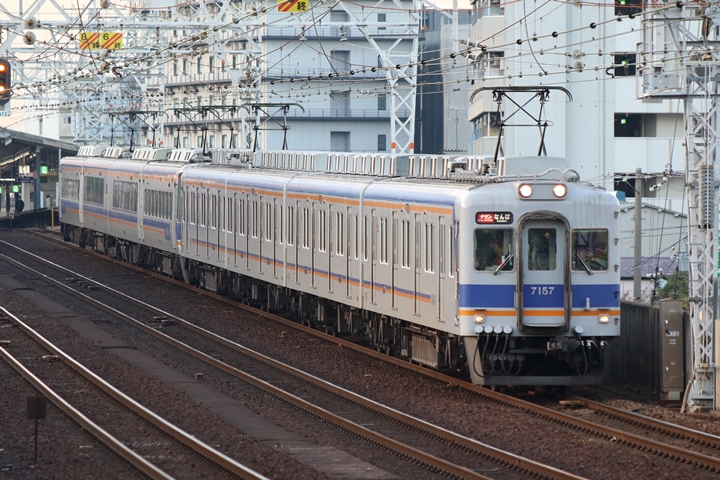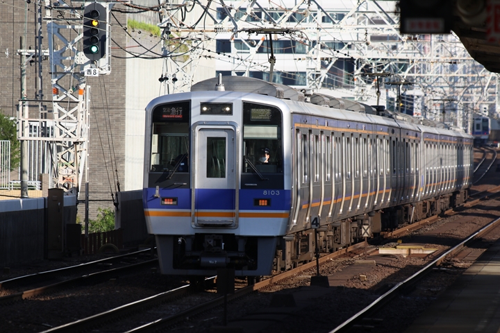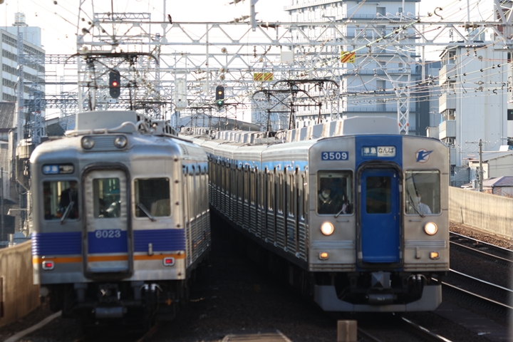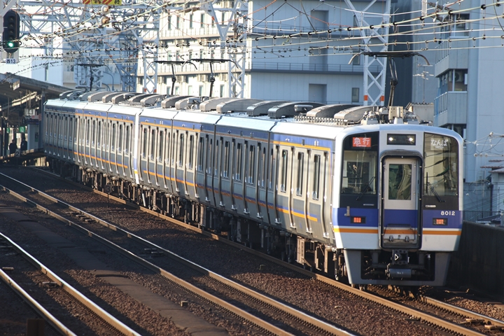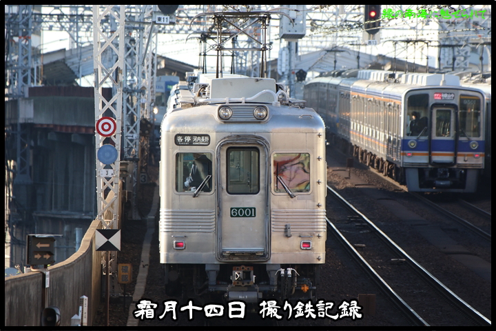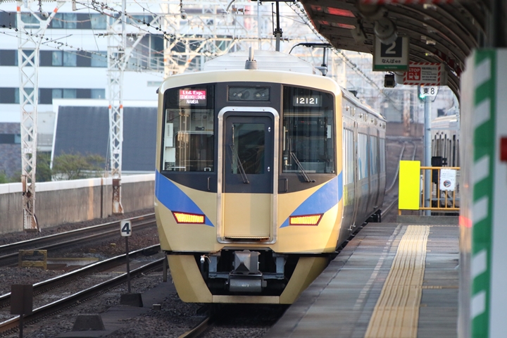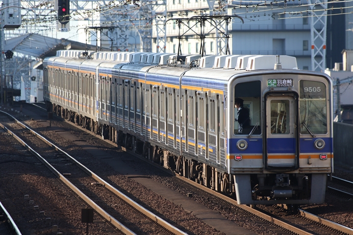 | 弊ブログにおける「撮り鉄記録」も早くも64回目となります。この日は平日ダイヤを今宮戎駅で撮り鉄しました。まず1st CHAPTERでは新今宮駅6時27分発南海線回送車、なんば駅6時29分発高野線急行橋本行きの画像から御紹介します。当CHAPTERの注目は2000系ブツ8連、8個連なるパンタグラフは圧巻の一言です。ちなみに2000系2連は支線用ワンマン工事が行われており今後さらにレアになるかと思います。 |