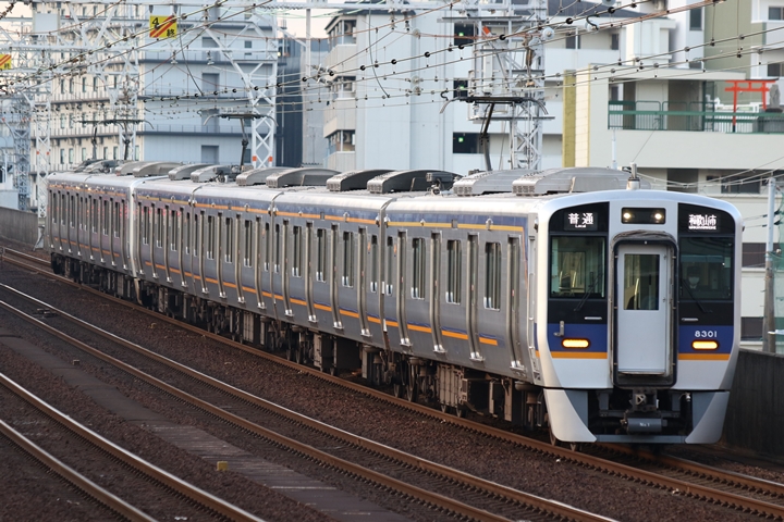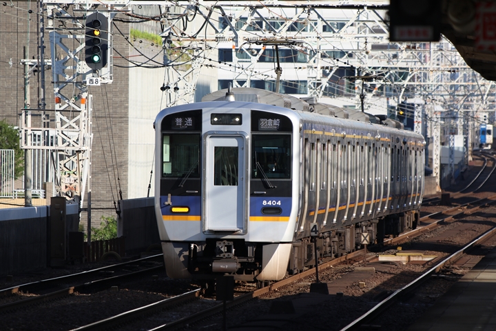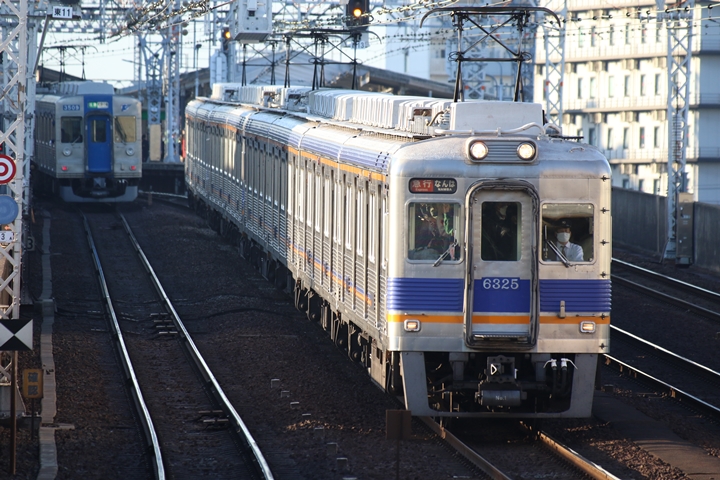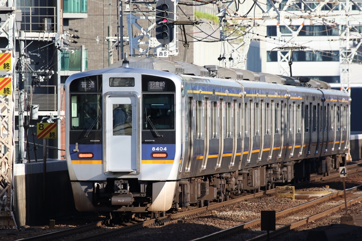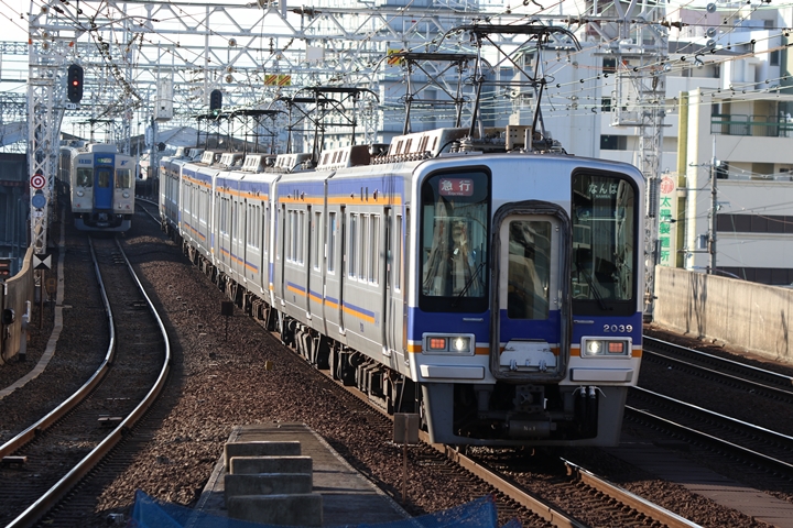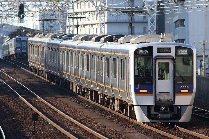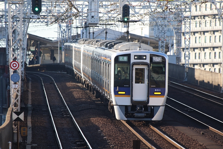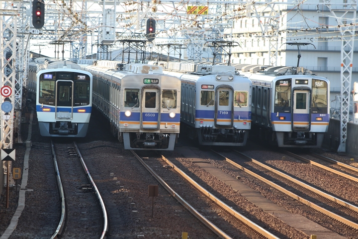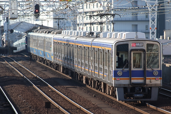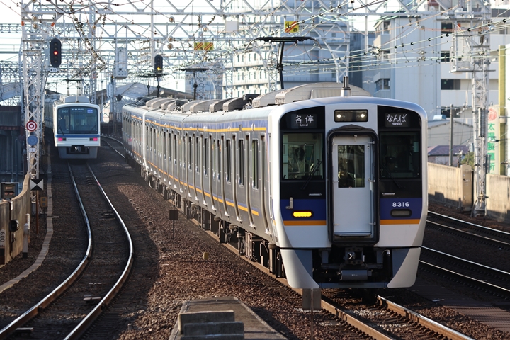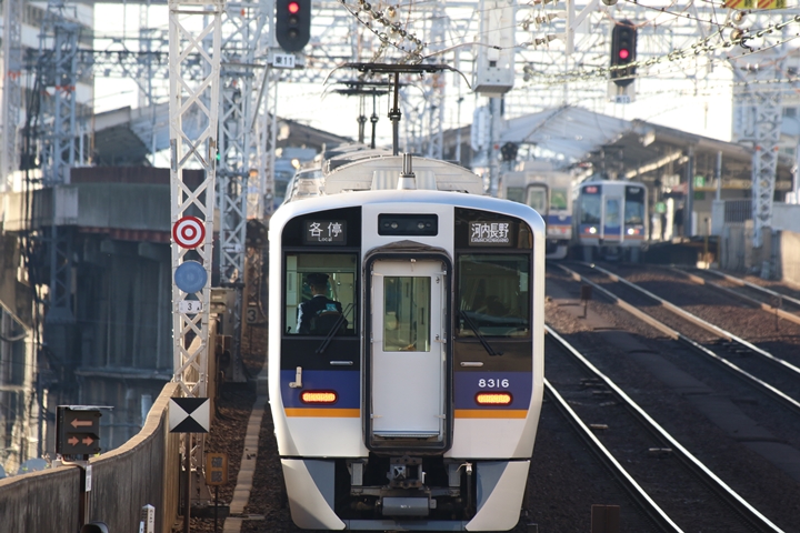 | 続いて5th CHAPTERではなんば駅7時32分発南海線普通和歌山市行き、新今宮駅7時34分発高野線準急行なんば行きの画像から御紹介します。当CHAPTERの注目は運よく撮影できた念願の4編成の並び、何度もこの場所で撮り鉄していますが初めて撮影できました。 |